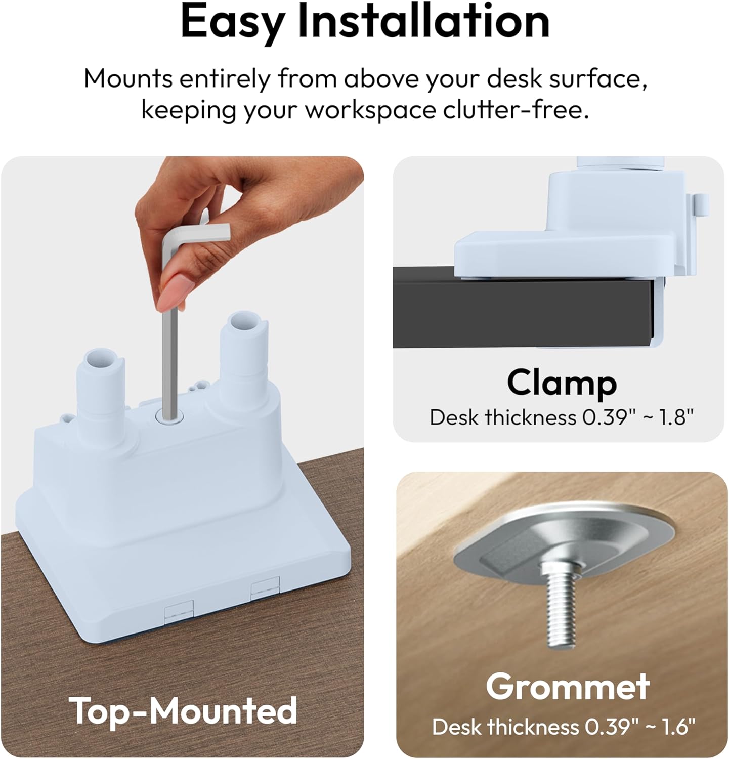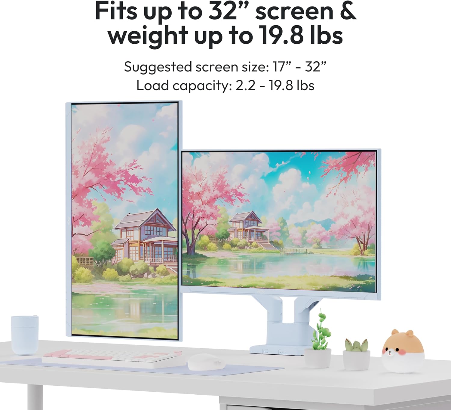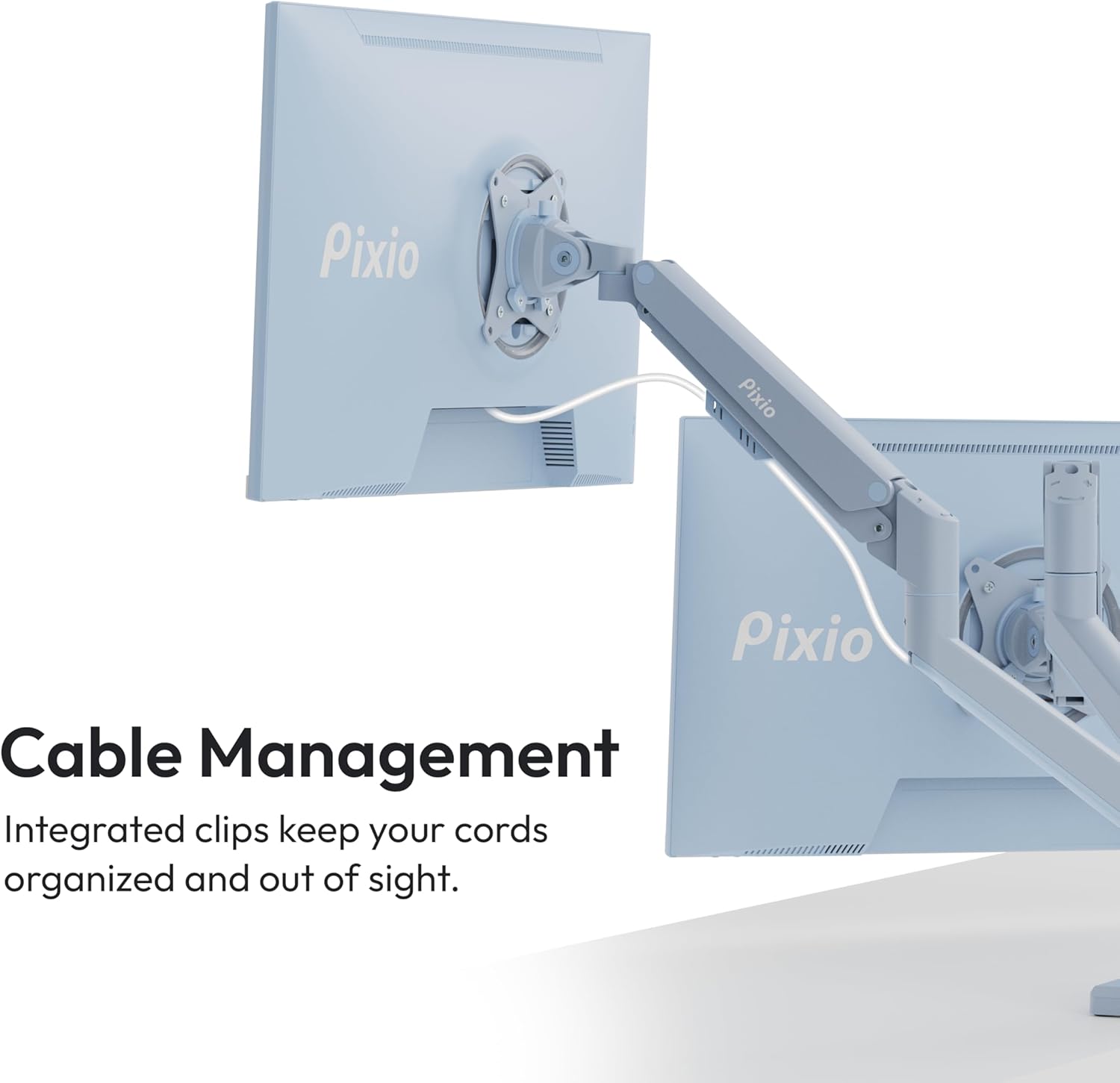 Pixio PS1D Wave Blue Dual Monitor Arm Stand Desk Mount - Fits up to 32 inches Monitors and up to 19.8lbs. VESA Compatibility and Integrated Cable Management