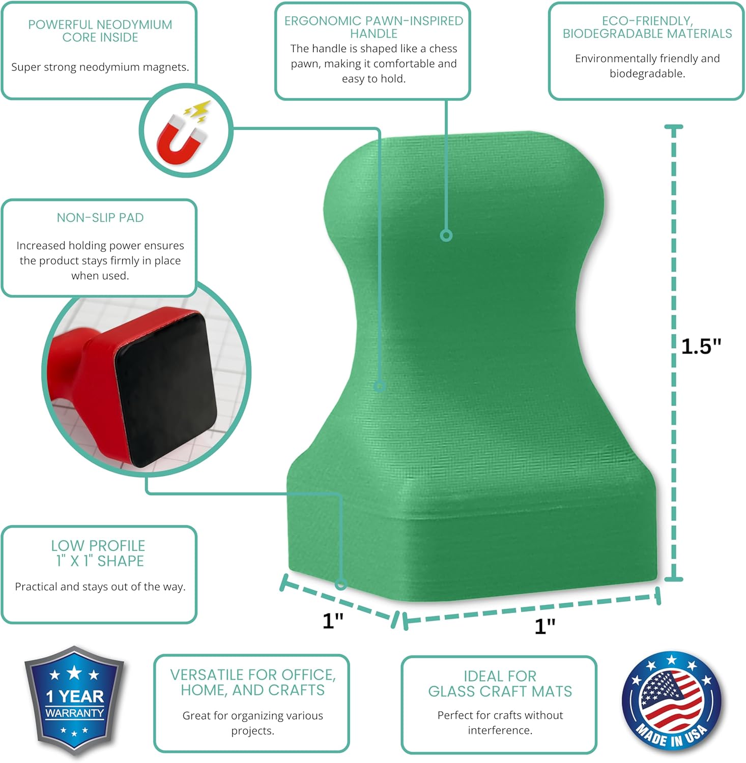 Glassboard Studio MiniPawn Magnet - Strong Neodymium Rare Earth Magnets for Fridge, Whiteboard, Locker & Magnetic Glassboards - Crafting & Office Use - Strong Fridge Magnets (Spring Green, 12)