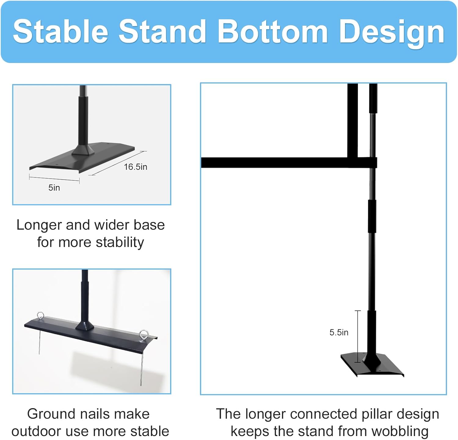- Stable Stand: We solved the problem of unstable projector screen stand as a whole by upgrading the bottom iron plate and connecting pillar. The bottom iron plate has been lengthened, widened and weighted, and the connecting pillar that connects to the iron plate has been lengthened to 5 inches to improve stability, ensuring that your projector screen and stand are securely fixed in place.