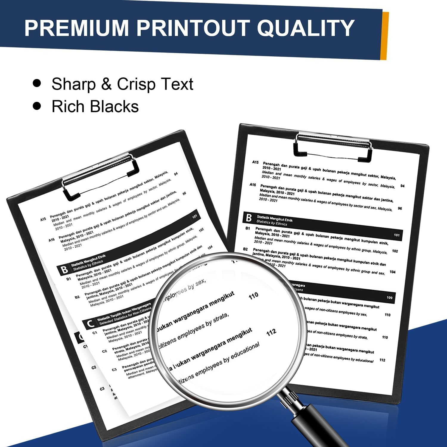 - Premium Printout: Sharp text & rich blacks for vivid image and text printout, no streaks, no fading and no smearing