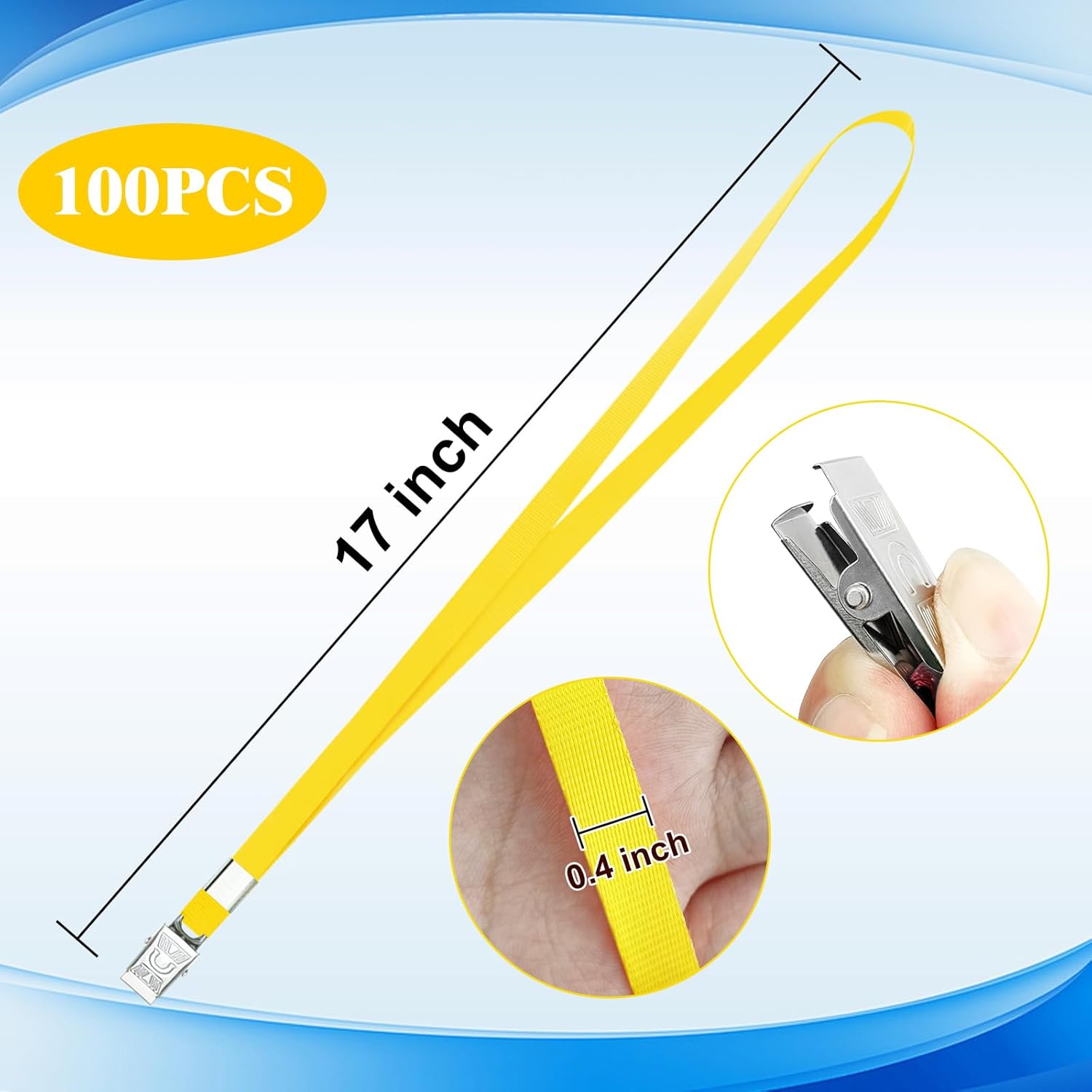 • Package include:You will get 100 pieces black lanyard with metal flat badge clip,0.4" wide,17"length.