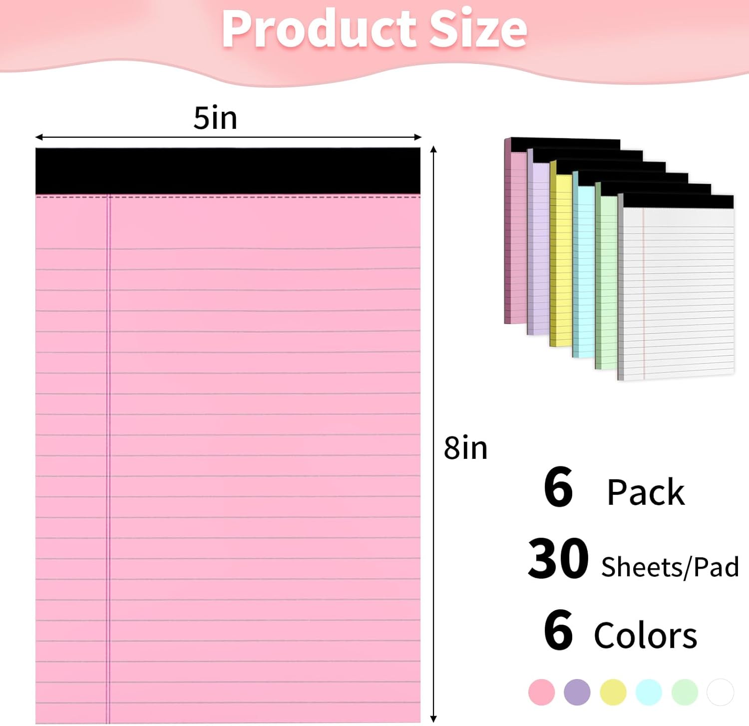 WINKIO Legal Pads 5" X 8", 6 Pack Colored Note Pads, College Ruled Yellow Lined Paper Pads, Letter & Legal Ruled Pads, 30 Sheets per Small Writing Pads 5x8 for School, Home, Office, Business