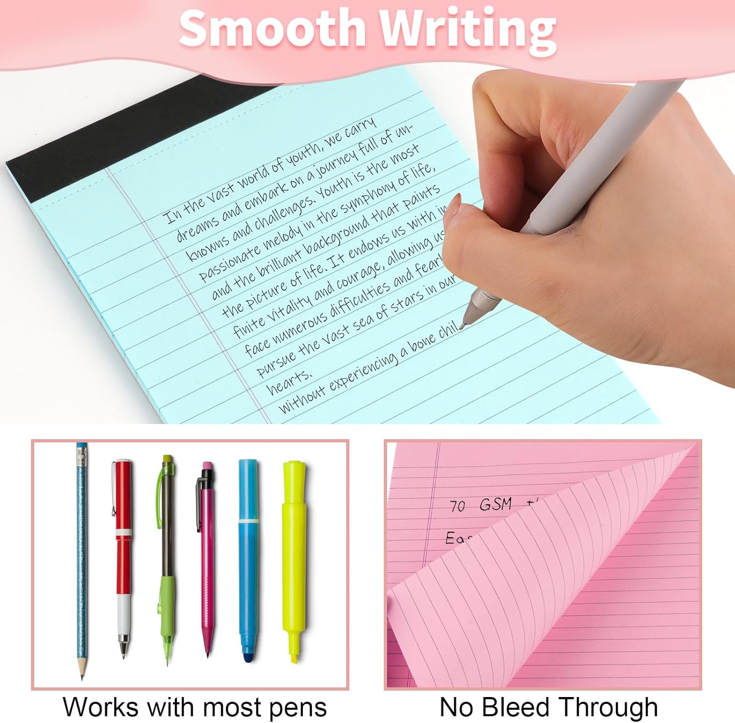 - 【Quality Paper】The yellow legal pad 5"x8", featuring 80gsm smooth paper, prevents ink bleed-through and ensures a smooth writing experience with various pens. Its left margin and title space enhance organization, while the legal rule format offers ample note-taking space. The yellow paper is gentle on the eyes
