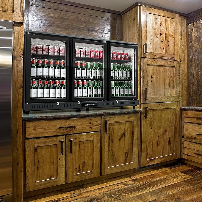 - 〔Durable, Secure, and Energy Conscious〕Crafted for durability, your Frostronics triple hinged door Back Bar Cooler features a rugged side-by-side hinged door design and an automatic defrost system to ensure long-lasting performance. Built-in locks on each door add an extra layer of security, safeguarding your beverages from unauthorized access. Additionally, the doors are equipped with an automatic closing mechanism to prevent energy loss, keeping operating costs low while maintaining optimal cooling.