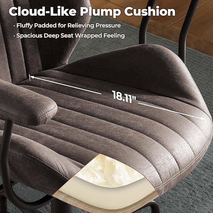 ovios Ergonomic Home Office Chair, Mid-Century Modern Faux Leather Chairs with Padded Armrests, Comfy Mid Back Swivel Rolling Executive Computer Armchair (Dark Grey, Suede Leather)