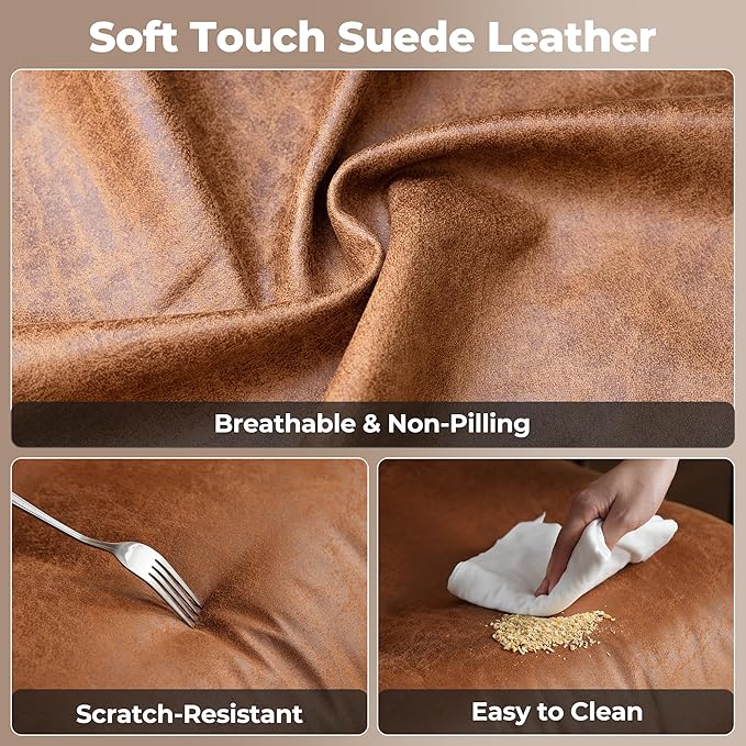 - Soft Touch Leather Fabric: Exquisite and luxurious soft faux leather fabric offers constant softness and comfort, with its unique texture and luster standing out. Featuring breathable, durability, smoothly, scratch-resistant, pet-friendly, non-pilling and easy to clean