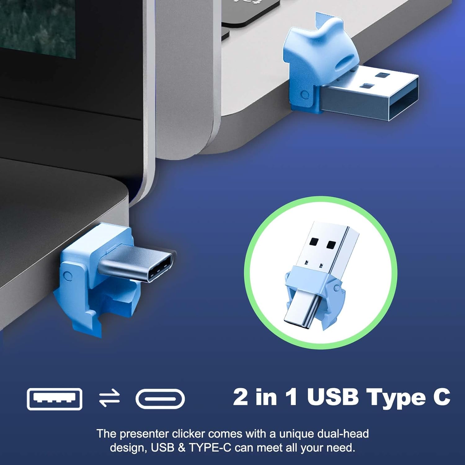 QUI Presentation Clicker for PowerPoint, RF 2.4GHz USB C Wireless Presenter Remote with Volume Control, PowerPoint Clicker Slide Advancer for Mac, Windows, Laptop, Keynote