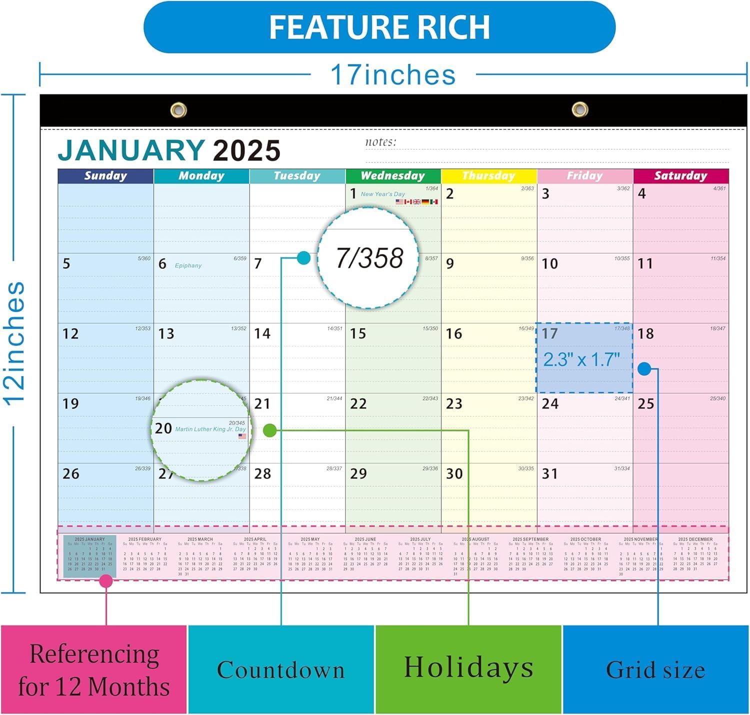 - 18 Months Calendar: This calendar 2025 can be used for 18 months, the date is January 2025 to June 2026, which is very different from the traditional desk calendars. Every day of the month to record can allow us to rational planning of time, more targeted to a better life