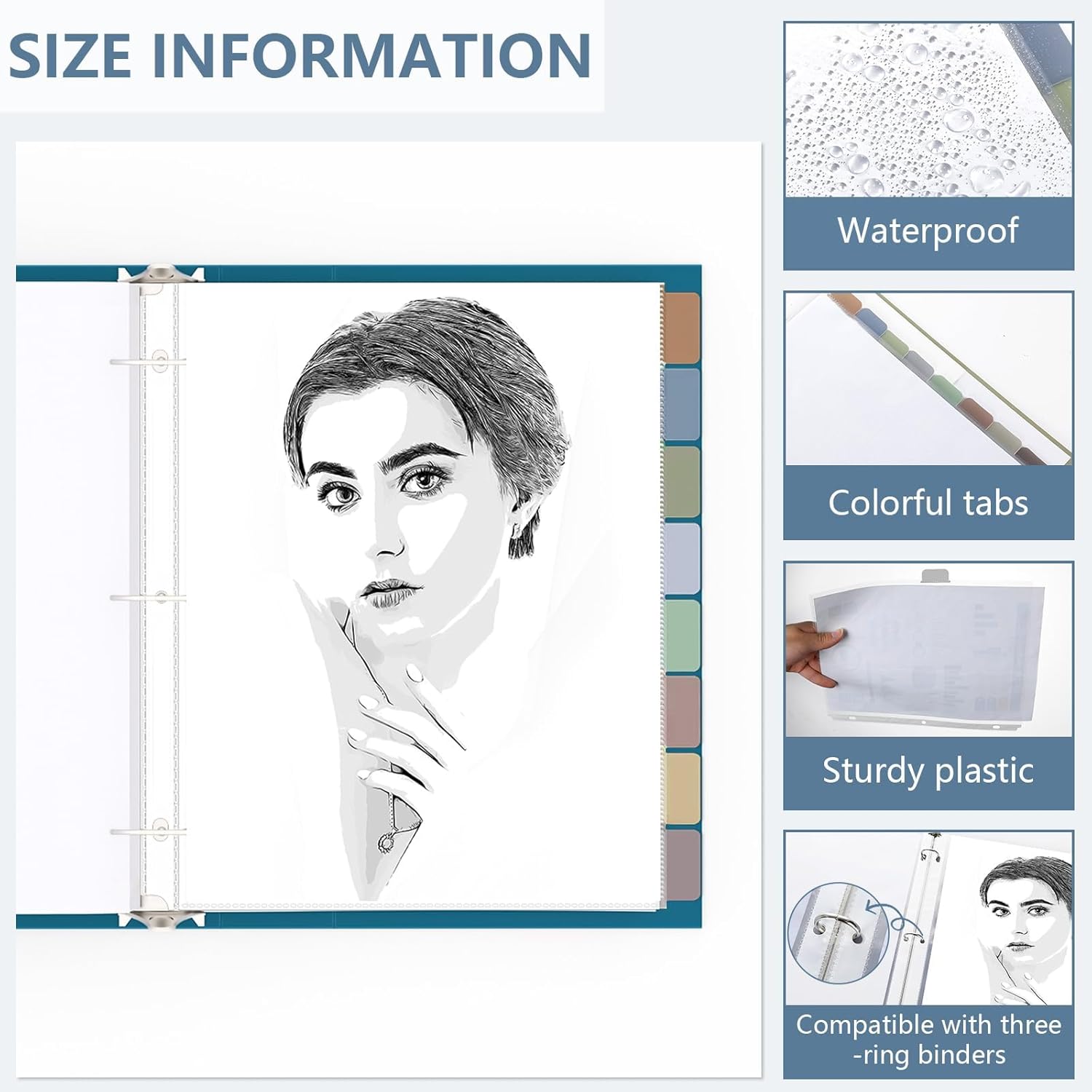- Versatile applications for all your needs: Whether you're storing notes, reports, or other important documents, these tabbed 3 ring binder sheet protectors protect against damage and stains. Ideal for preserving files, recipes, photos, certificates, organizing homework, customer information, classified documents, recipes, custom presentations, reference materials, and personal documents with ease.