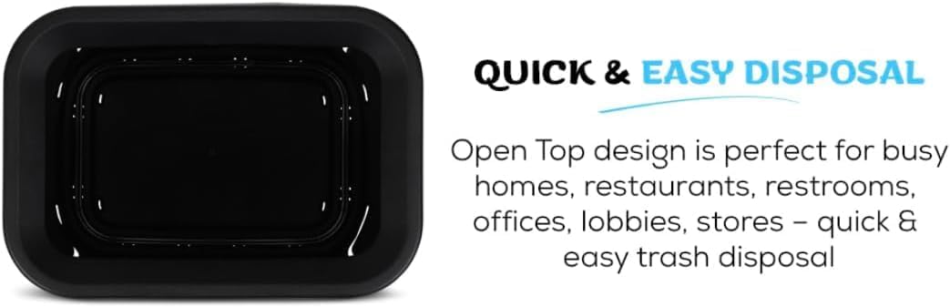 - QUICK & EASY DISPOSAL – Open Top design is perfect for Commercial Spaces and Busy homes: Restaurants, Restrooms, Offices, Lobbies, Stores – Quick & Easy Trash Disposal
