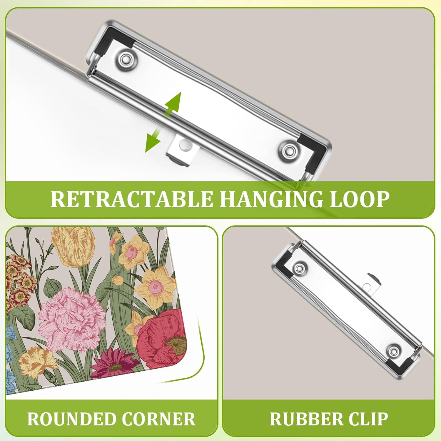 Spring Flowers Clipboard,Decorative Acrylic Clipboard with Low Profile Metal Clip for Office,School,Teachers,Students Standard Letter Size 9x12.5