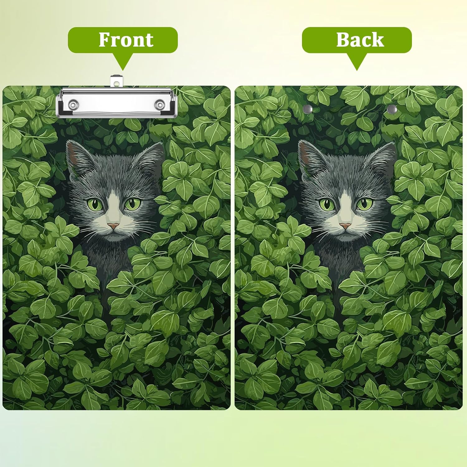 Black Cat Clipboard,Decorative Plants Acrylic Clipboard with Low Profile Metal Clip for Office,School,Teachers,Students Standard Letter Size 9x12.5