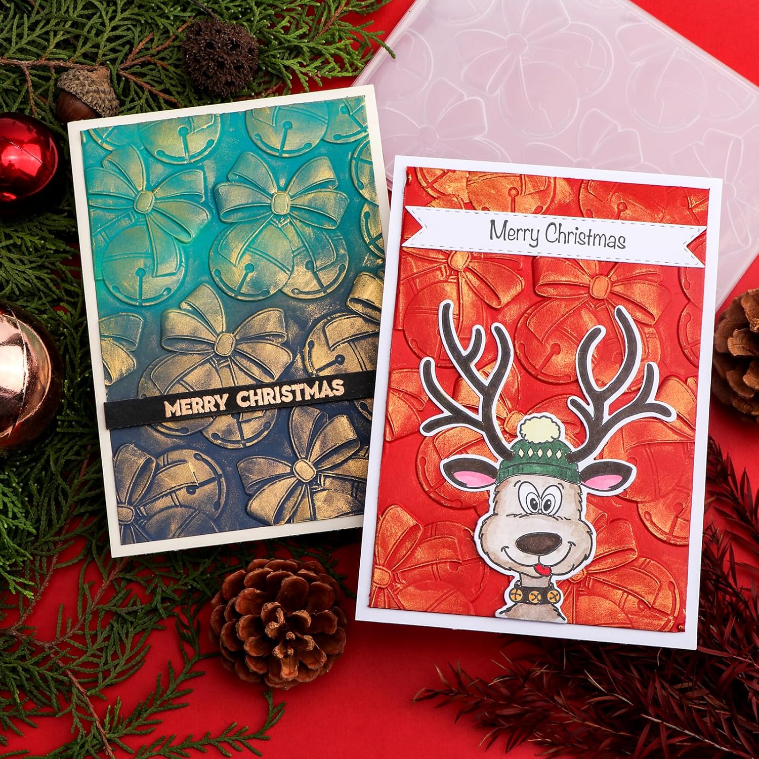 BAOFALI 3D Christmas Theme Plastic Embossing Folders Jingle Bells for DIY Scrapbooking Photo Album Card Paper Craft Decoration for Card Making,Embossing Template Paper Card Embossing Stencil