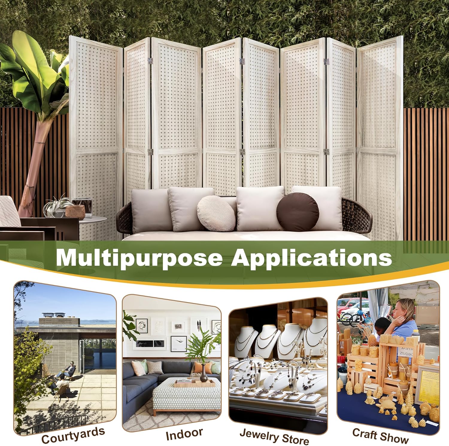 NicBex 8 Panel Pegboard Display,5.6FT Wood PegBoard Room Dividers,Folding Privacy Screens Portable Freestanding Display Board for Craft/Art Shows,Room Separation,Natural Wood
