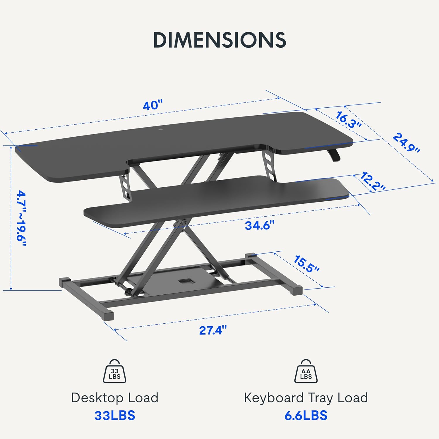 FLEXISPOT 40" Wide Standing Desk Converter Sit to Stand up Riser Height Adjustable Computer Workstation with Spacious 2-Tier Desktop, Black