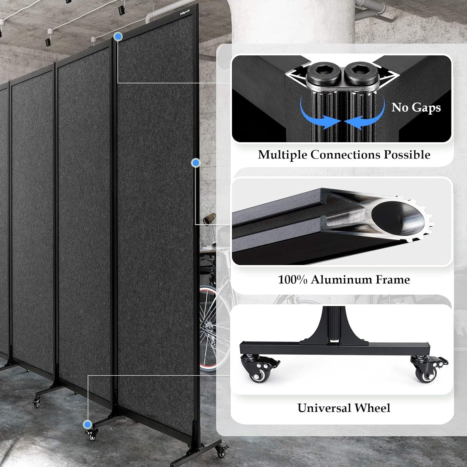 Upgrade Version Room Partition and Divider, Freestanding Rolling Dividers with Wheels,Office Privacy Screen Divider Wall,Classroom Felt Dividers,10'6"L* 6'7"H,5 Panel,Dark Grey