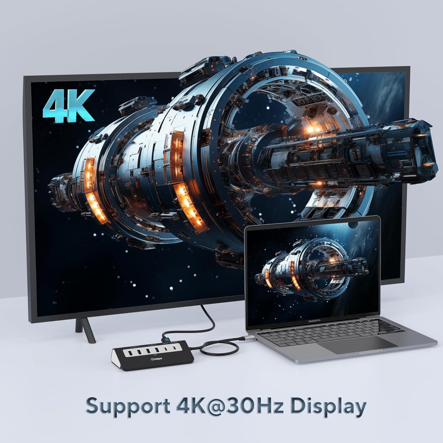 - HDMI 4K@30Hz: intpw usb hub for laptop can stream 4K@30Hz video to HDTV, Monitors or projectors via HDMI port, ensuring an immersive 3D visual experience for you. (Note:The host USB-C port on your device must support Display Port Alt Mode)