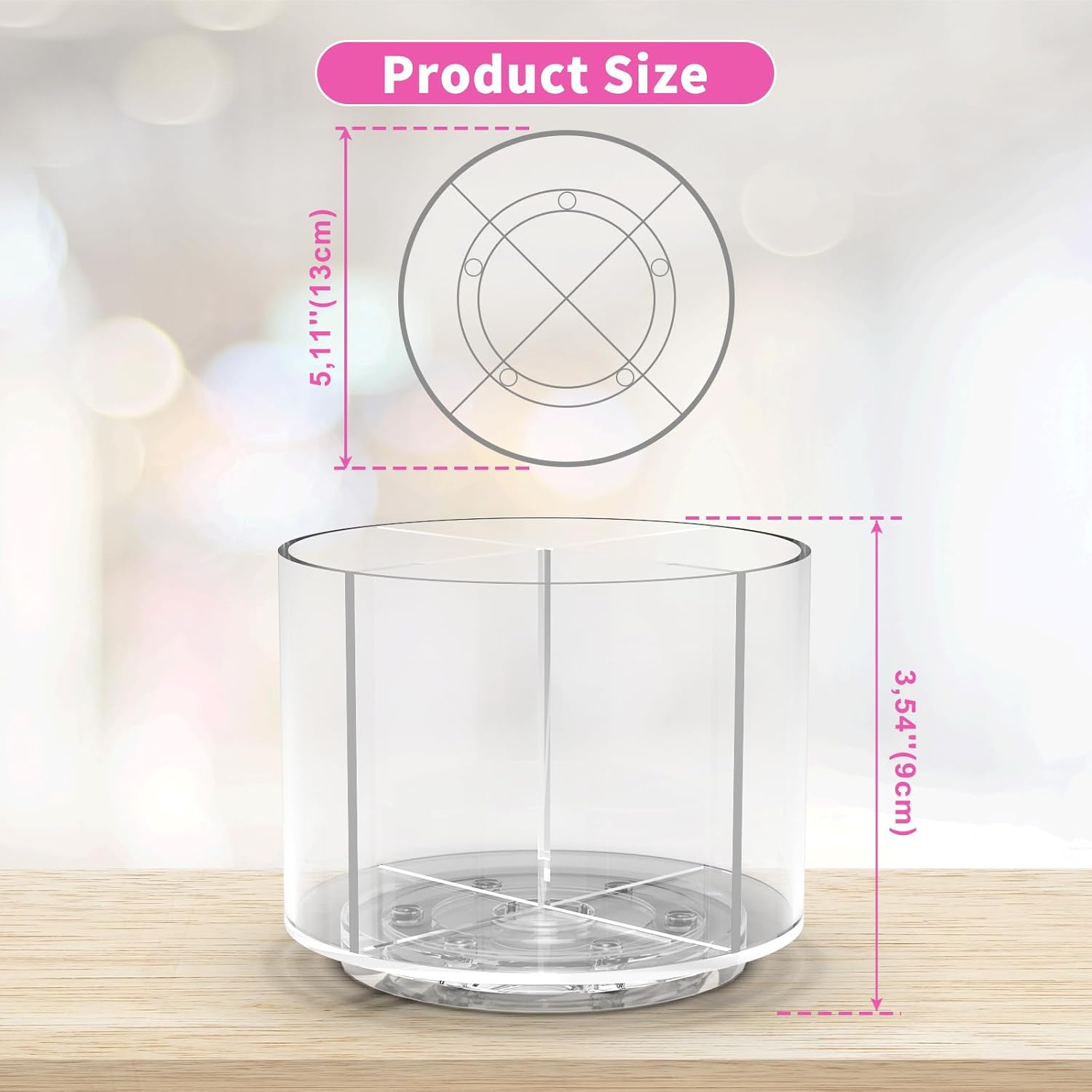 - Spinning Acrylic Small Caddy Organizer Desktop: The 360-degree acrylic desk round storage organizer's rotatable design allows each compartment to face you easily and access what you need. The clear rotating carousel desk organizer is suitable for use in the office living room bedroom study classroom bathroom wherever you need it