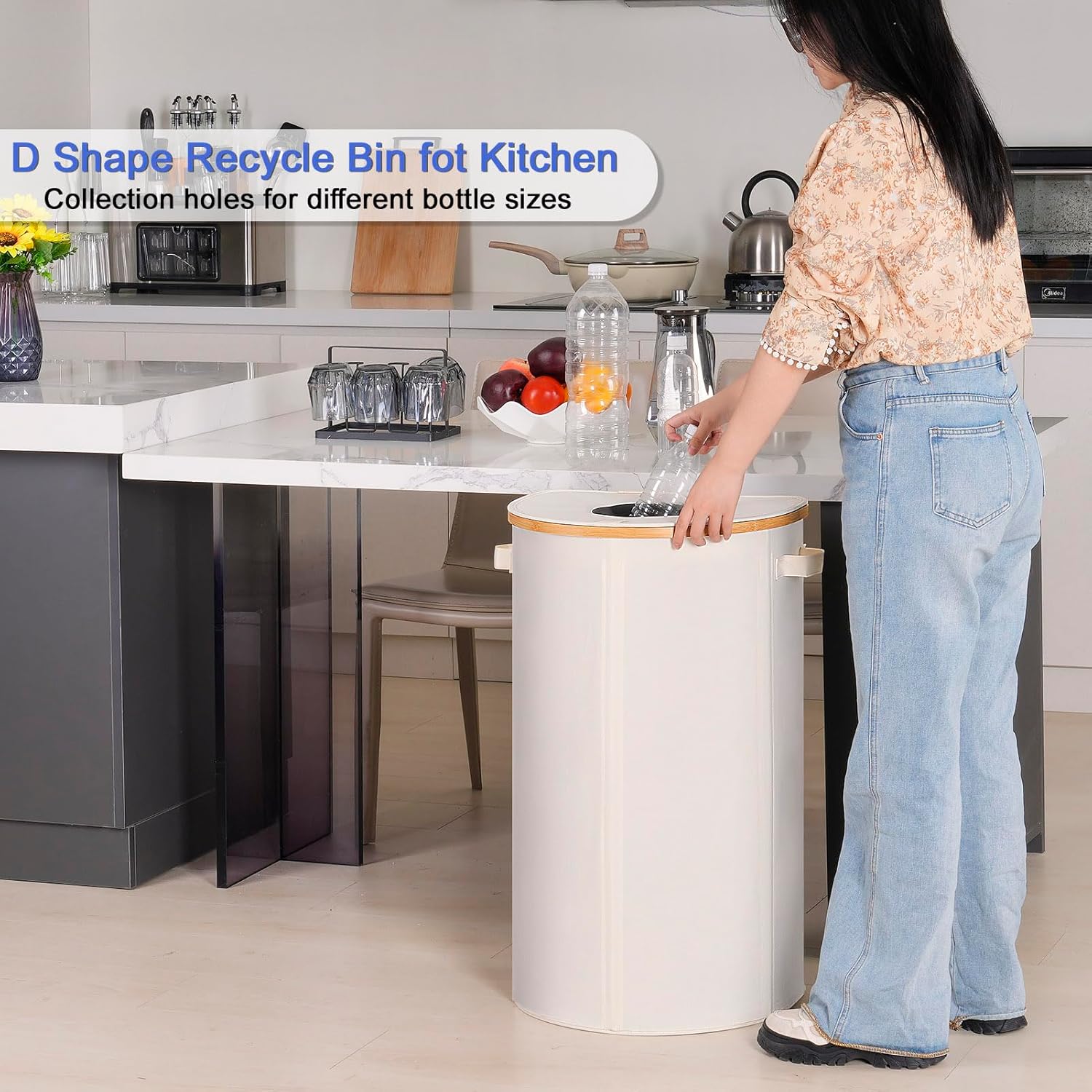 - 【Recycle bin with Hole】This recycle bin has a lid with a round silicone hole on the top, so you don't need to open the lid, just drop the bottle through the silicone hole and it will close automatically, which effectively helps to protect you from odors.