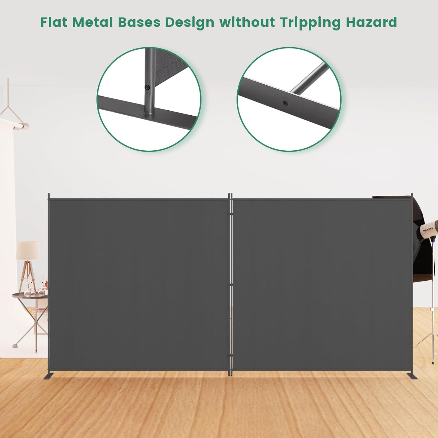 Helios&Hestia 2-Panel 6 ft Tall Indoor Folding Room Divider, Portable Privacy Screen, Freestanding Partition Separator, Temporary Wall Separation for Bedroom, Office, 142" W X 71" H, Dark Grey