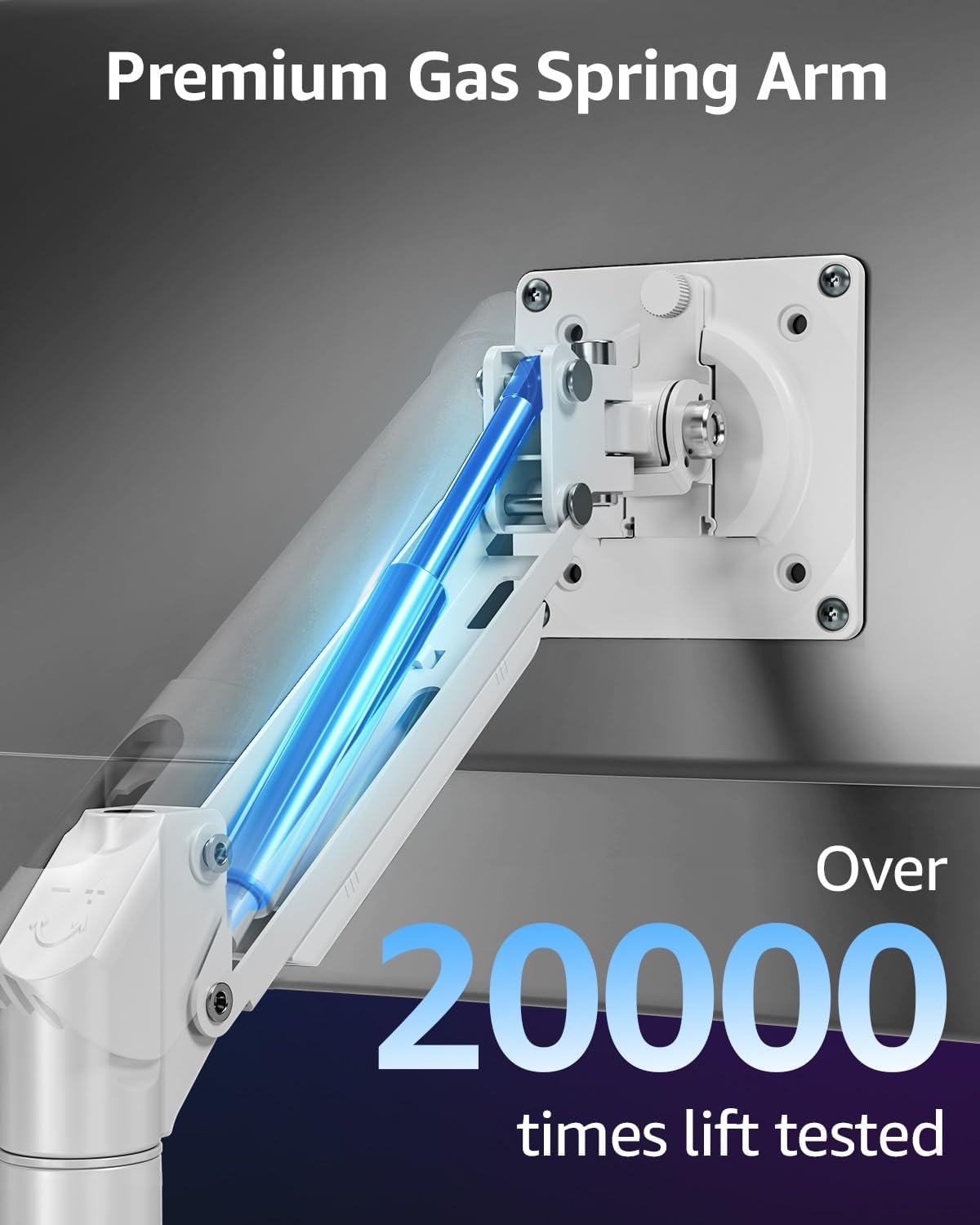 - Flexible Gas Spring Arms:The dual monitor arm's gas spring has been tested over 20,000 times to ensure consistent performance.Each arm extends up to 21“,max height up to 17.3”.You can choose the most comfortable position for your needs.