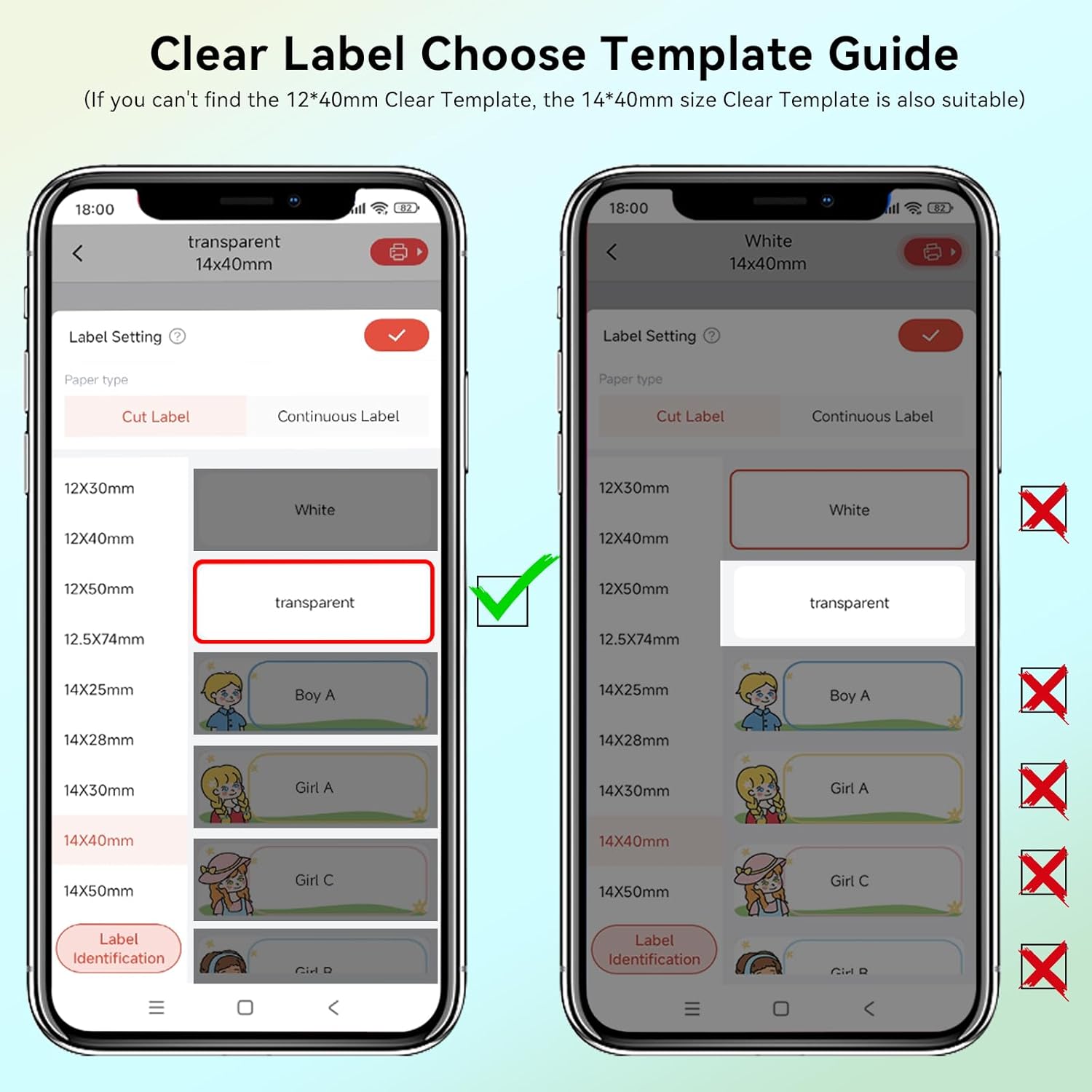 - Clear Labels Guide — Select The Clear Template before printing. If it is not selected correctly, it may not be able to recognize the clear labels, resulting in printing misalignment and other problems.