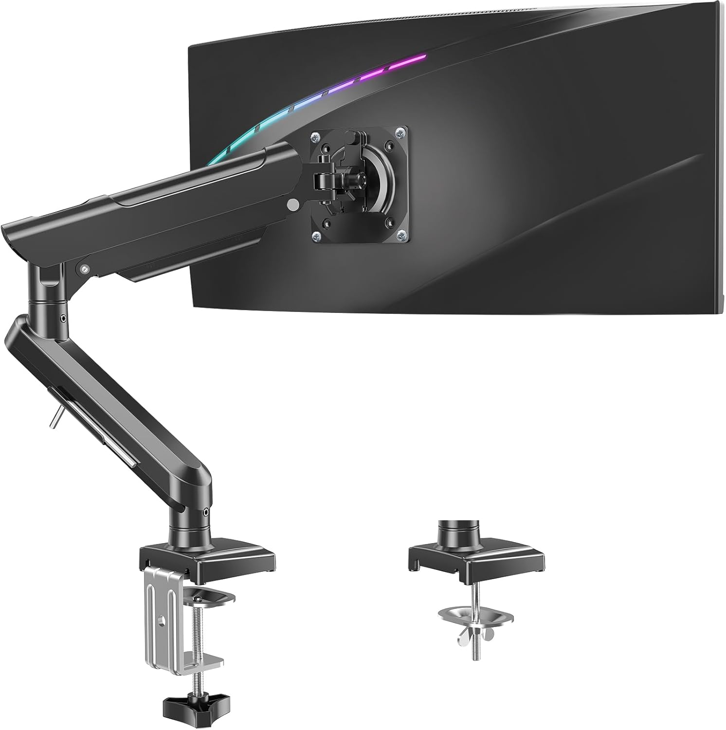 - Flexibility in Screen Positioning: 360° rotation for landscape or portrait orientation, +/-90° swivel for effortless screen sharing, and +85°/-45° tilt for the ideal screen angle. This single monitor stand allows you to effortlessly find the ideal ergonomic posture to boost comfort and productivity when working or playing games, taking you to the next level!