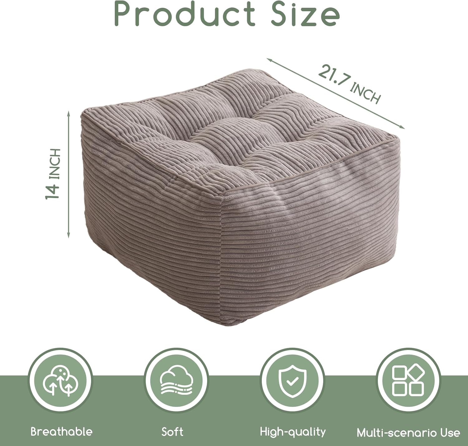 - The size of this footrest is 55*55*35 cm, which is very versatile and can be used with sofas, side tables or floor cushions, suitable for any room in the home