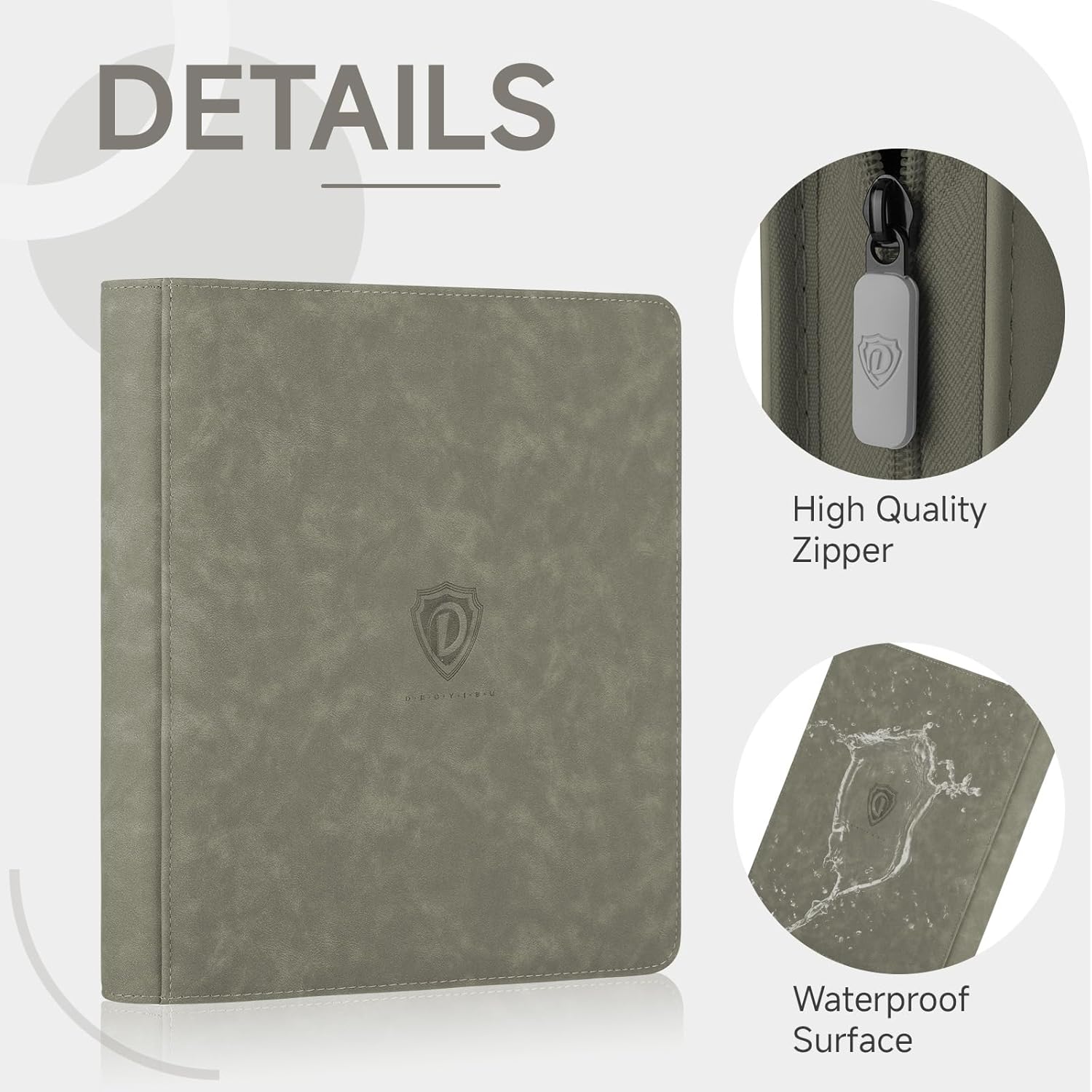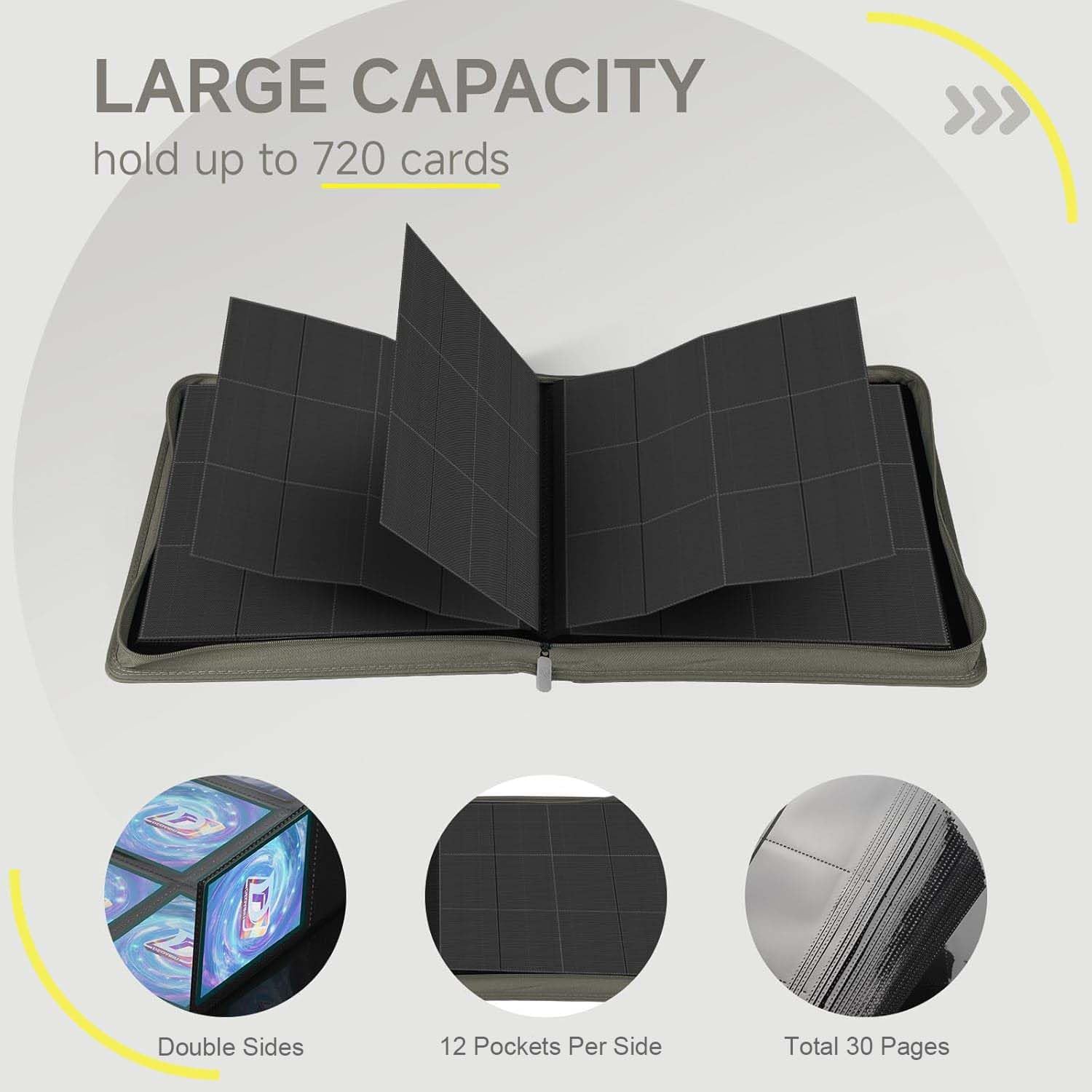 Trading Card Binder with Zip,12 Pockets Card Binder,720 Double Sided Pocket Card Collection Binder,Card Album Card Folder for MTG,TCG,Sports Cards,Game Cards,Grey