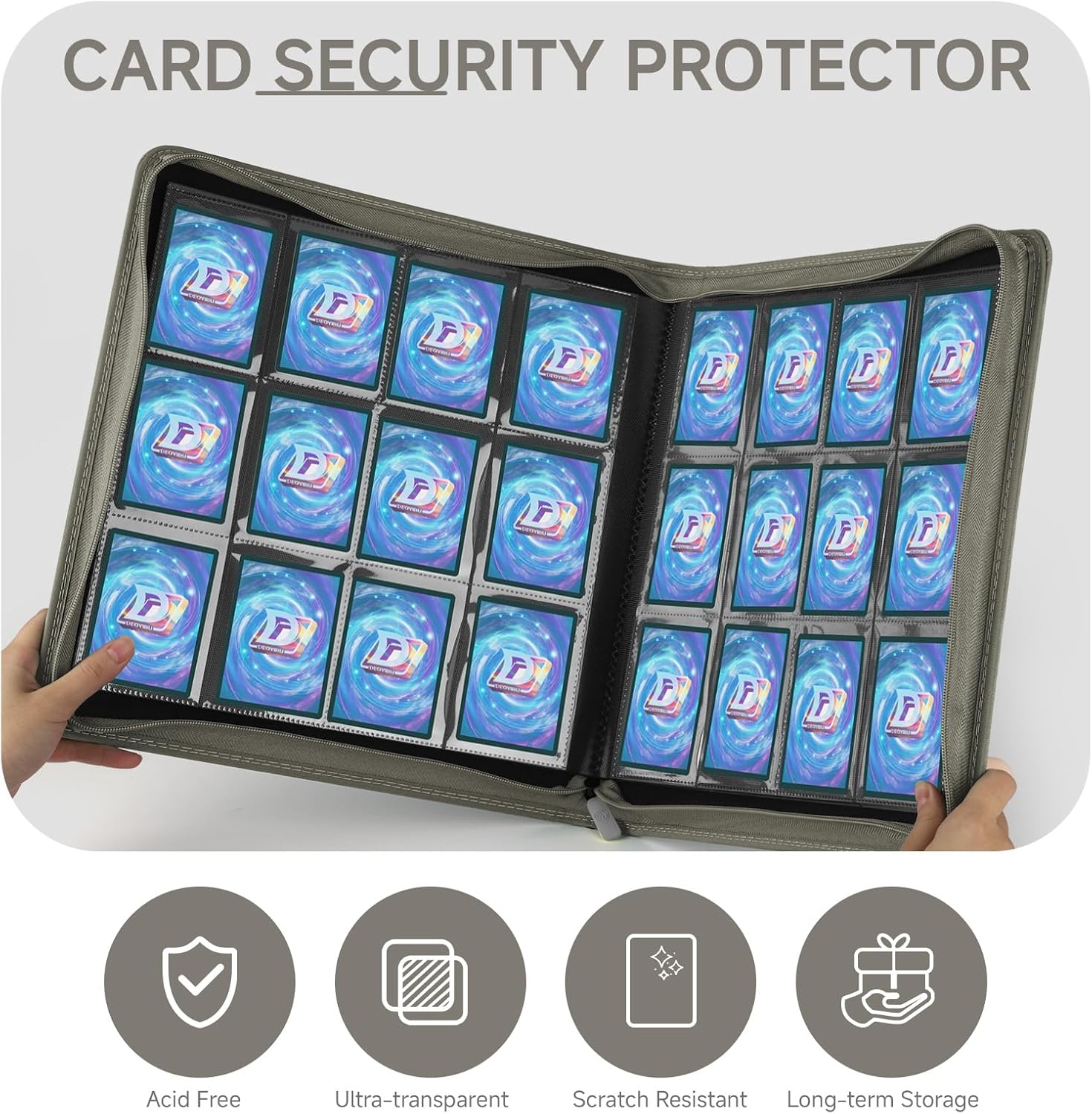 - Thoughtful Details: Different coloured card binders are matched with different coloured zips to meet your personalised needs.Side card pocket to prevent card spillage.Thickened shell design,give your collectible cards stronger protection.