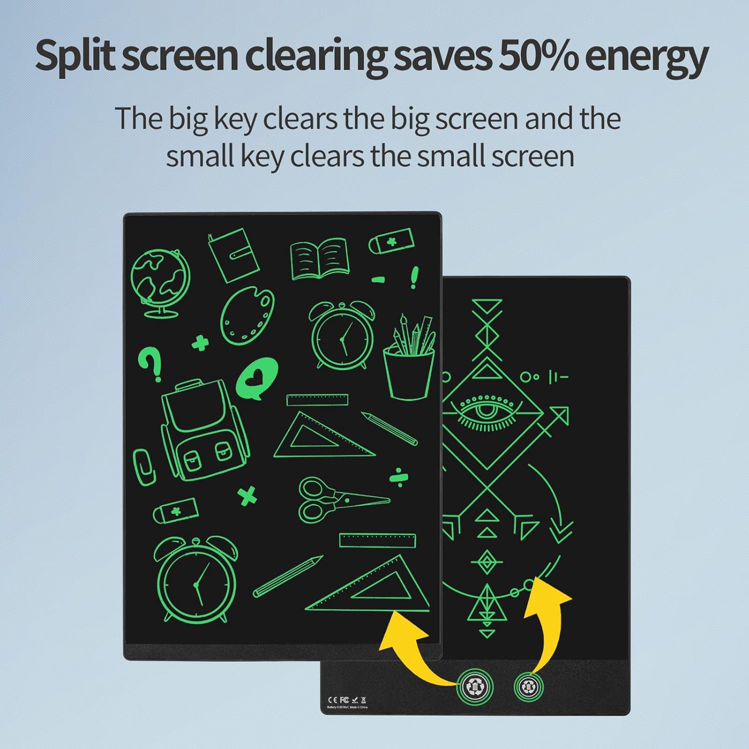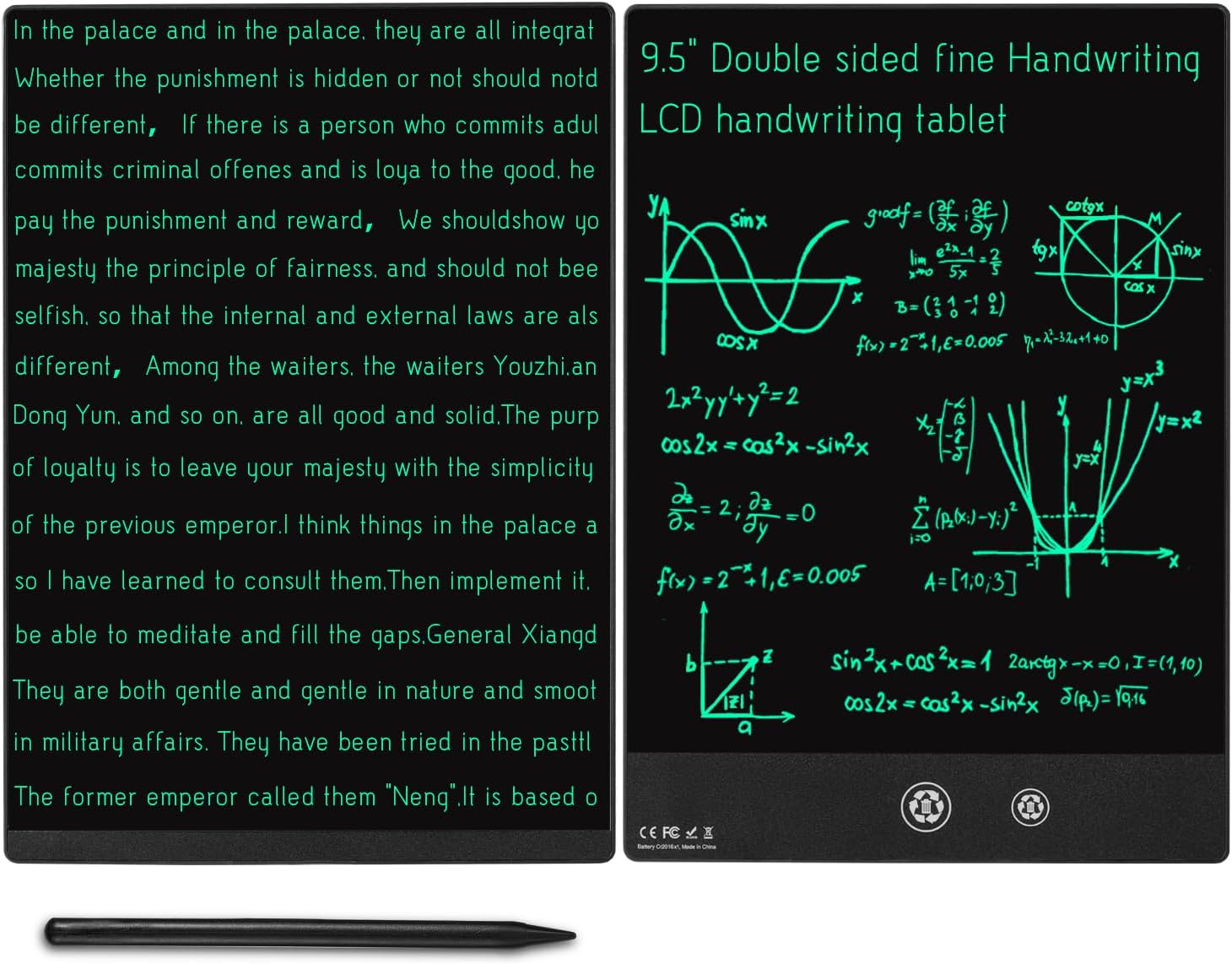 LCD Writing Tablet, 9.5in Double Display Erasable Reusable Electronic Drawing Pads