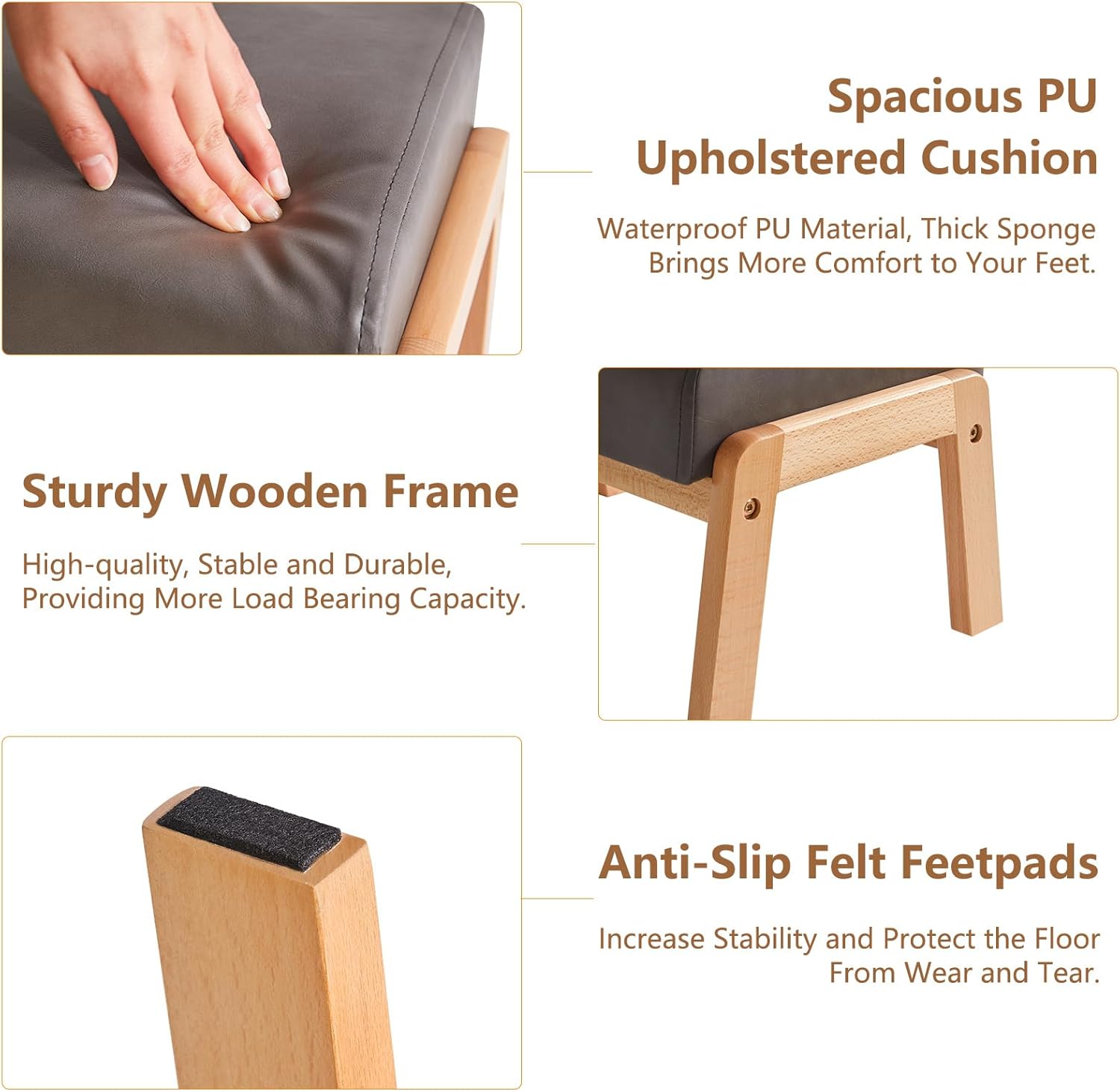 IBUYKE 10.2” H Small Foot Stool Ottoman, Rectangle PU Faux Leather Foot Rest with Padded Seat and Wood Legs, Modern Accent Ottoman Foot Rest for Living Room Bedroom Couch Office, Grey WBD013G