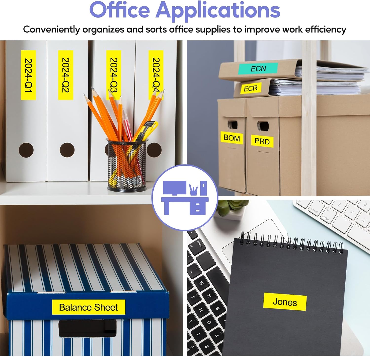 - NineLeaf Compatible for Brother P-touch MK631 M-K631 M631 M-K631S Non-Laminated Label Tape, Color:Black on Yellow, Length:8m(26.2ft), Width:12mm(1/2")