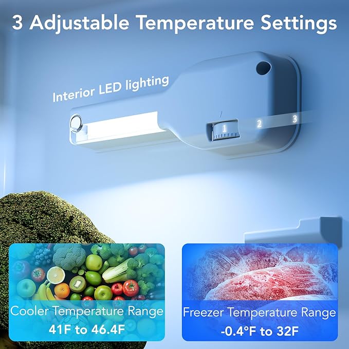 - The small refrigerator for bedroom with a thermostatic knob, allows precise temperature control: 32°F to 50°F in the refrigerator compartment and -1°F to 3°F in the freezer compartment. This ensures optimal temperatures for different types of food, meeting the diverse temperature requirements of various ingredients.