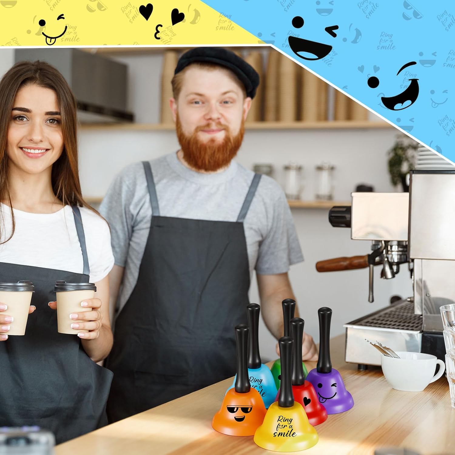 6 Pcs Call Bell Ring Service Hand Bell Smile Ringing for Desk Classroom Hotel Counter Reception Restaurant Food Line, Wedding Events(6 Color)