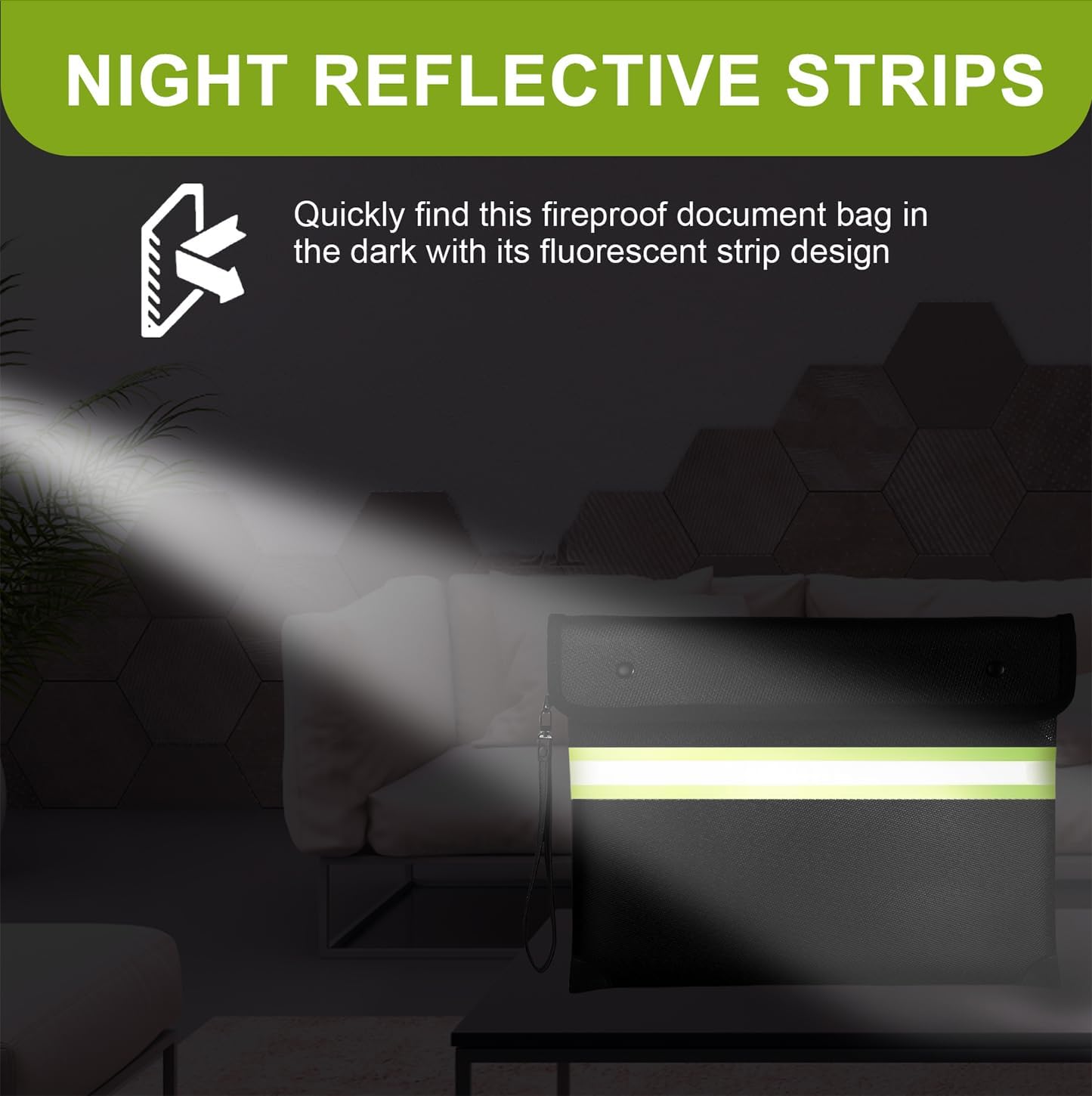 6500°F Fireproof Document Bag,Upgraded Fireproof Money Bag with Waterproof Zipper,10 Layers Heat Insulated Materials/Reflective Strip with Handle for Important Documents