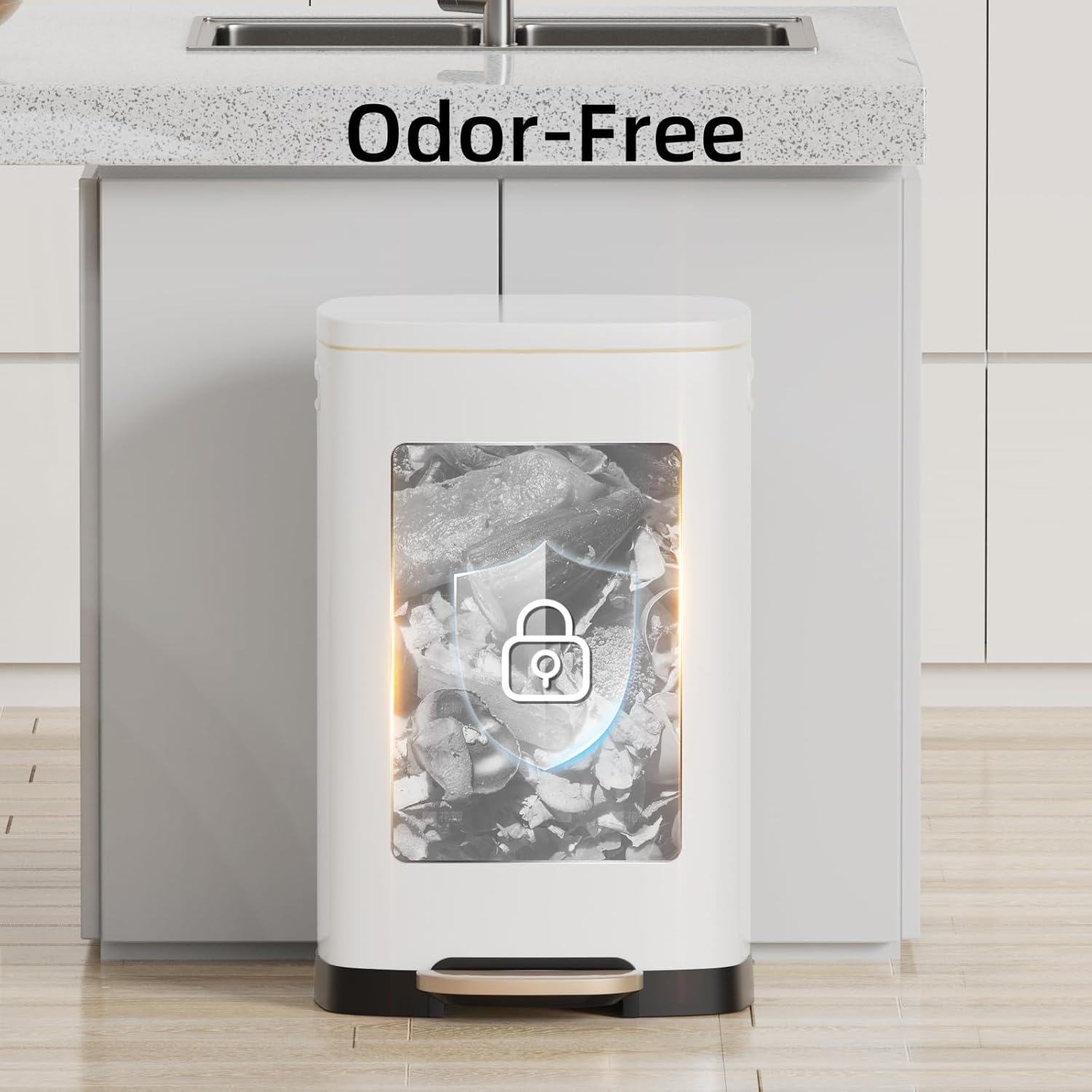 - 🚮 Large Capacity & Odor Lock Technology: 50L (13 Gallon) extra-large capacity reduces frequent trash runs, perfect for busy kitchens. Sealed lid with odor-blocking design traps smells, keeping your space fresh and clean.