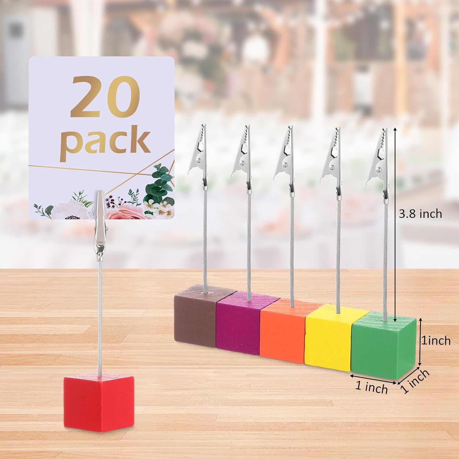 - Anti wear and stable: our cube base place card holders are made of quality wood block with metal clips, both are quality material and can last for a long lifespan, sturdy and not easy to break or crack