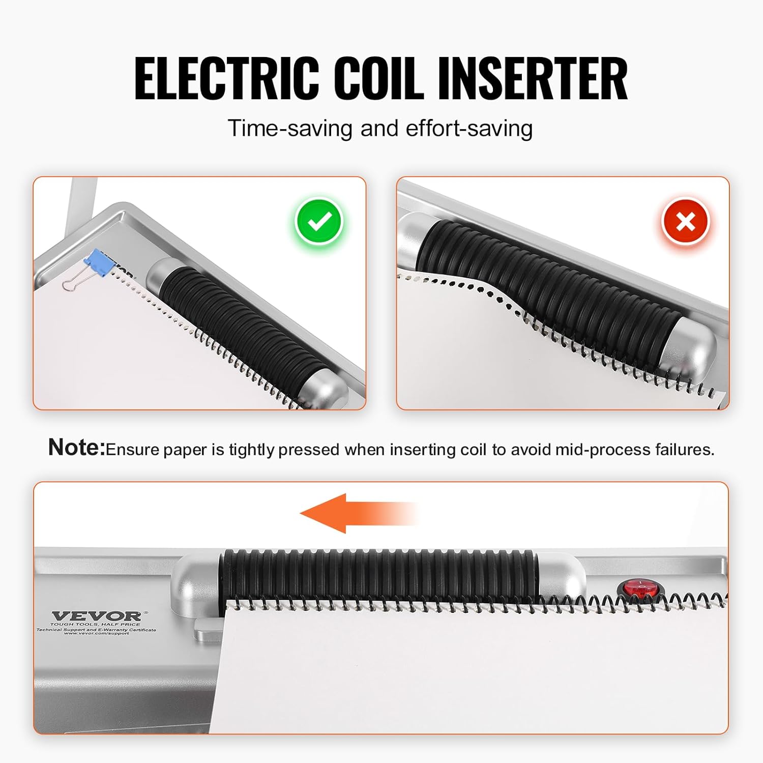 VEVOR Coil Spiral Binding Machine, Manual Book Maker with Electric Binding, 46-Holes Binding 500 Sheets Punch Binder, with 100pcs 5/16'' Coil Binding Spines, for Letter Size, A4, A5