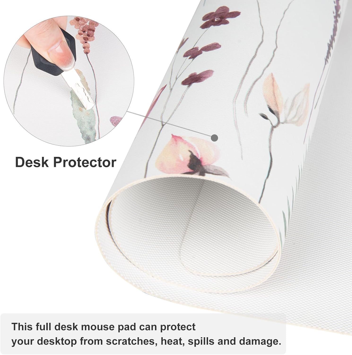 QiyI Large Mouse Pad, Cute Flower Desk Mat for Desktop, Women Girls Floral Office Décor Accessories, PU Leather Waterproof Big Gaming Mousepad, Wildflowers Desk Pad Computer Mat, 31.5" x 15.7"