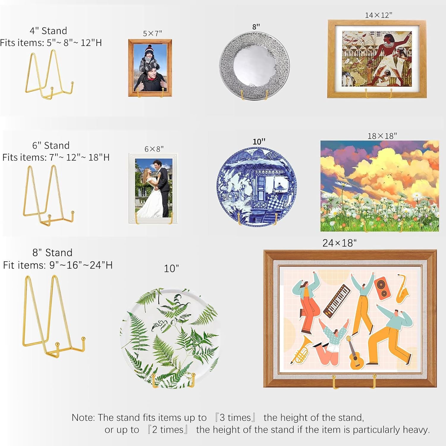 - 5 Pack Stands: The 5 pack plate holder set allows you to meet different needs with one purchase, and it is more cost-effective. You can use the display stand to place your photos, artwork, open books, mobile phones, tablets…and so on