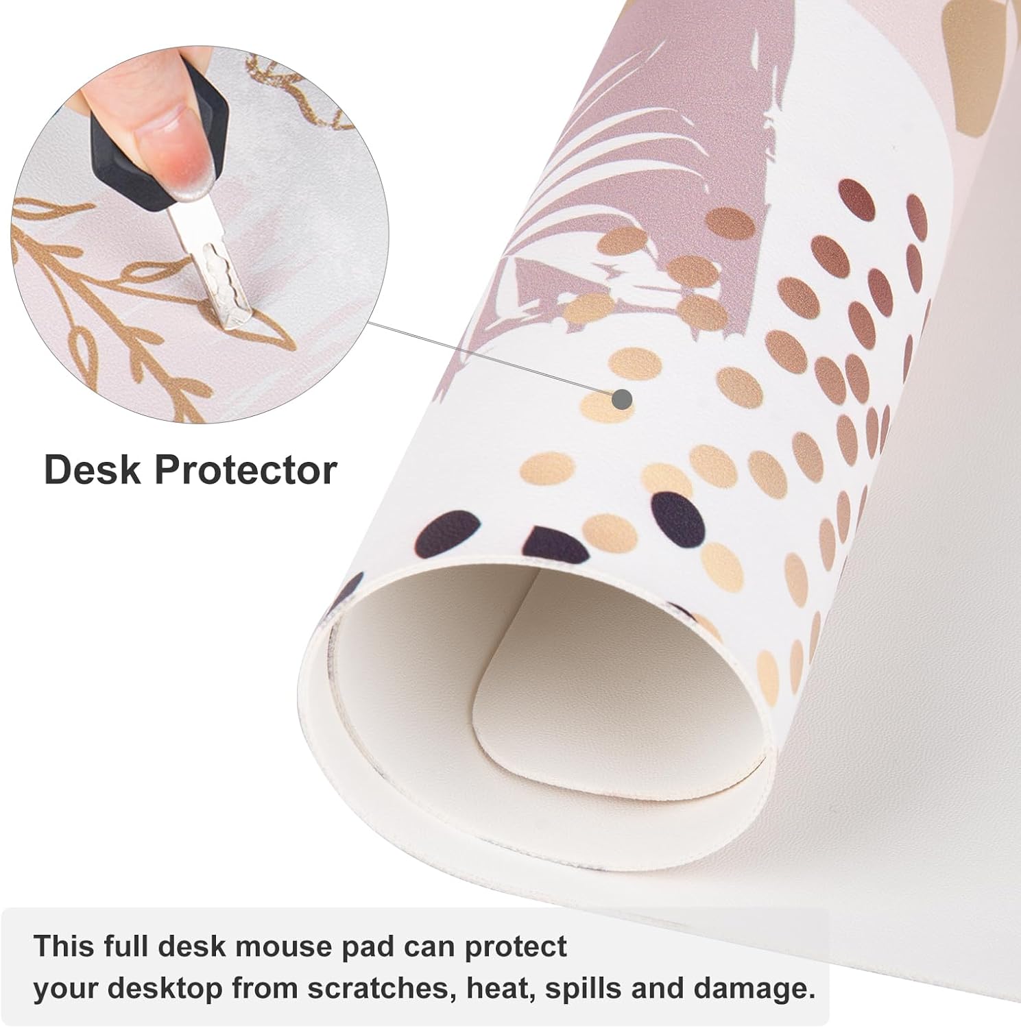 QIYI Large Mouse Pad for Desk, Cute Desk Mat for Desktop, Women Girls Office Décor Desk Accessories, PU Leather Waterproof Gaming Mousepad, Boho Botanical Desk Pad Computer Mat, 31.5" x 15.7"
