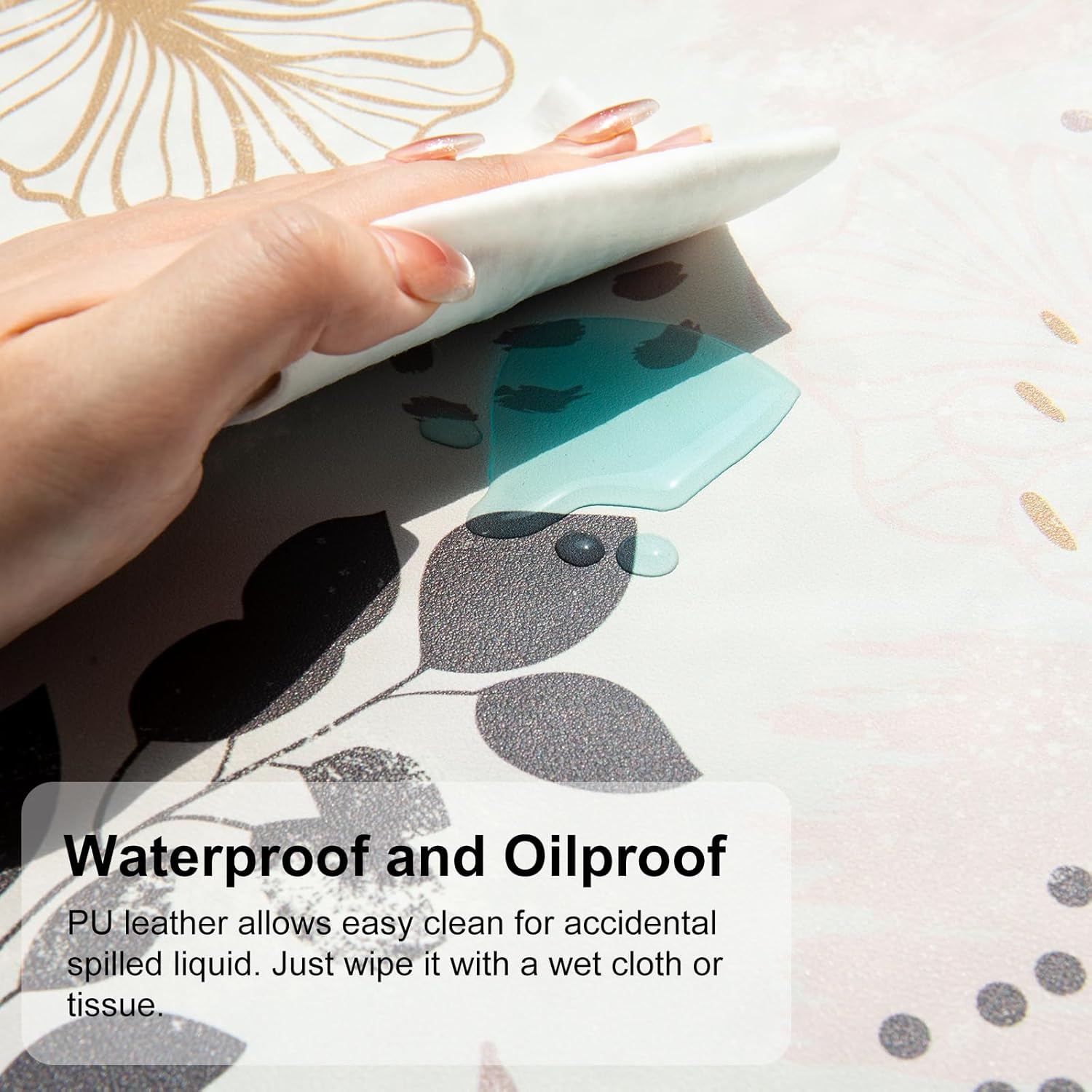 - Waterproof & Easy to Clean Desk Cover - Made of water-resistant and durable PU leather, this cute mousepad help prevent your desk from damages such as scratches, stains, spills and heat. Easy to clean, just wipe with a wet cloth or tissue.