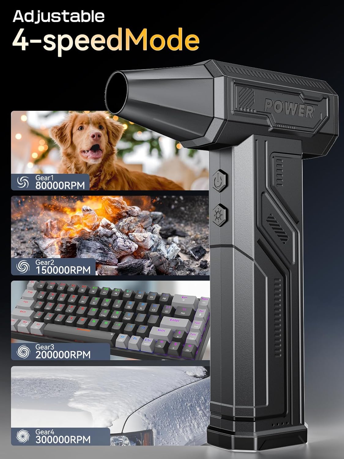 - High-Speed Performance: The electric air duster boasts an impressive 300,000 RPM, delivering powerful airflow for efficient dust and debris removal, making it ideal for cleaning electronics, home, and car interiors.