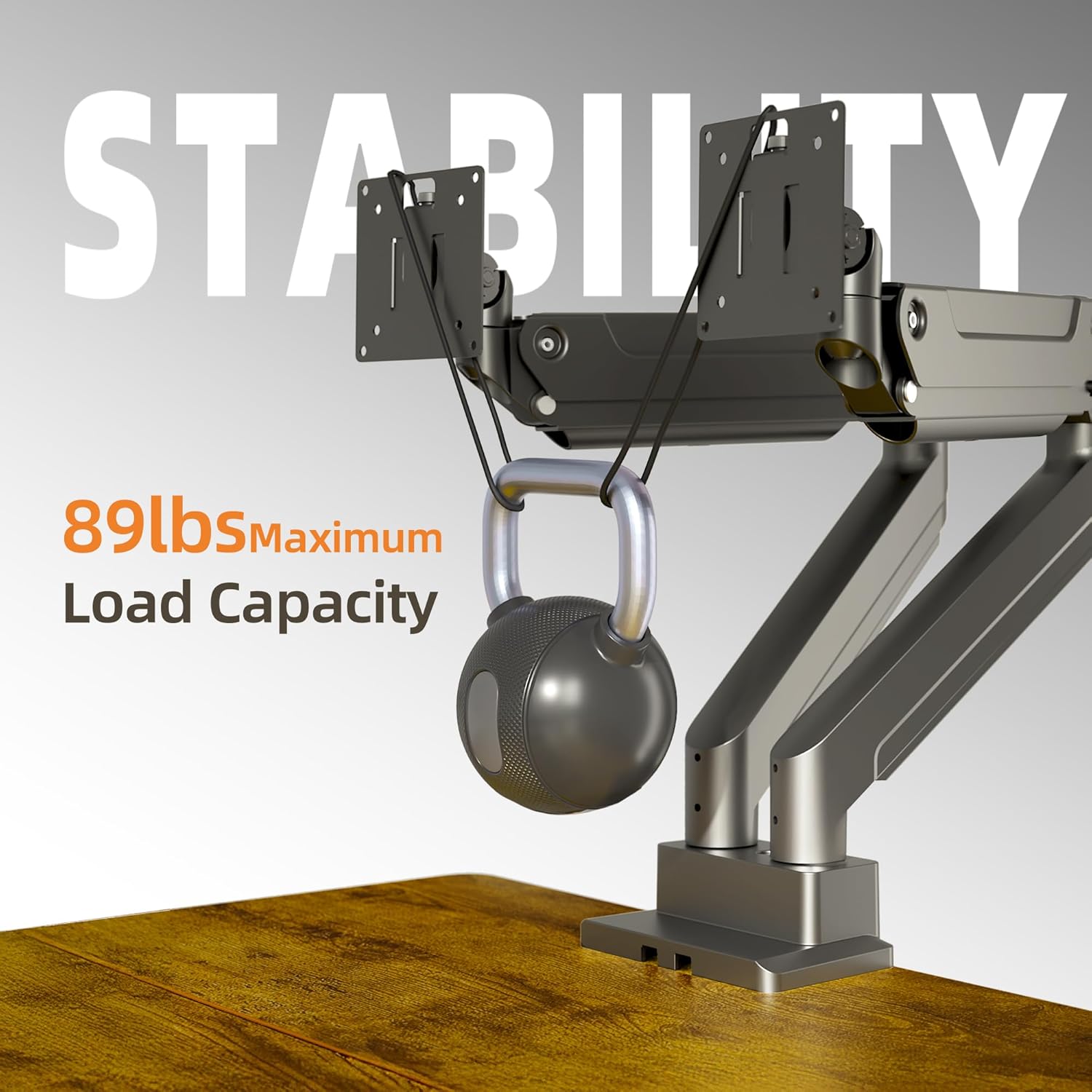 Claiks Dual Monitor Mount for Max 35 inch Screens Stand up to Max 89 lbs, Ergonomic Gas Spring Heavy-Duty Adjustable Monitor Arm, with Clamp and Grommet Base, VESA Mounting Holes 75&100mm, Black
