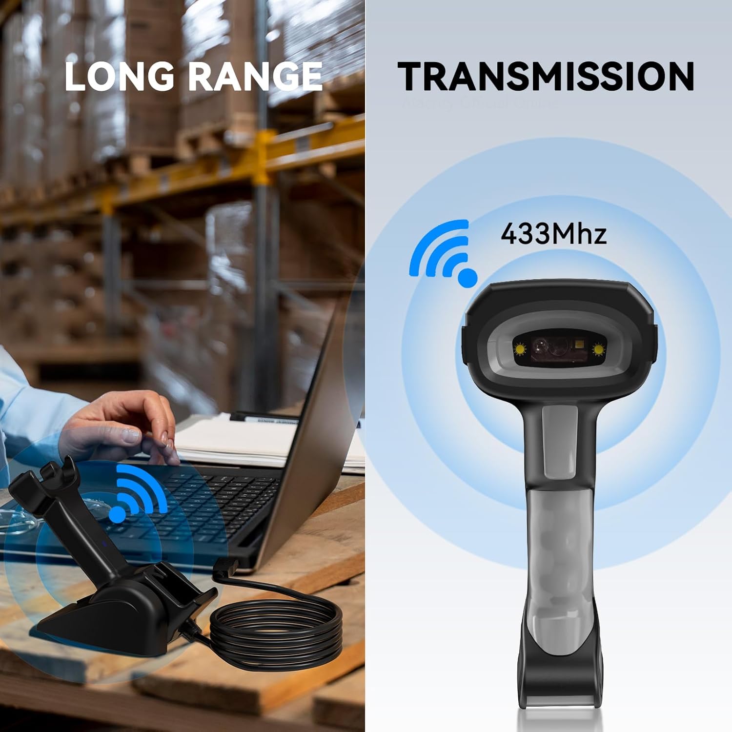 - 【Superior Signal Range】 The Alacrity 433MHz wireless barcode scanner is distinguished by its exceptional long-range transmission capabilities. In open environments, it can transmit signals up to an extraordinary 820 feet (250 meters). This extensive coverage makes it ideal for large warehouses where reliable signal strength is essential.