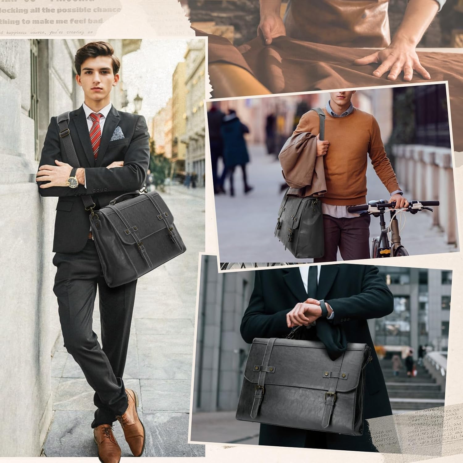 - 【17 inch Vintage Laptop Bag】The size of this Laptop messenger bag is 16.9"L * 5.9"W * 13"H, Weight:3.08lbs.Perfect for daily commuting, business events and travel, this large & multi-compartment messenger bag keeps your essentials safe and stylish.Plus,The design of this laptop bag for men emphasizes practicality and vintage style, making it an excellent messenger bag, business laptop bag, satchel bag, and shoulder bag.