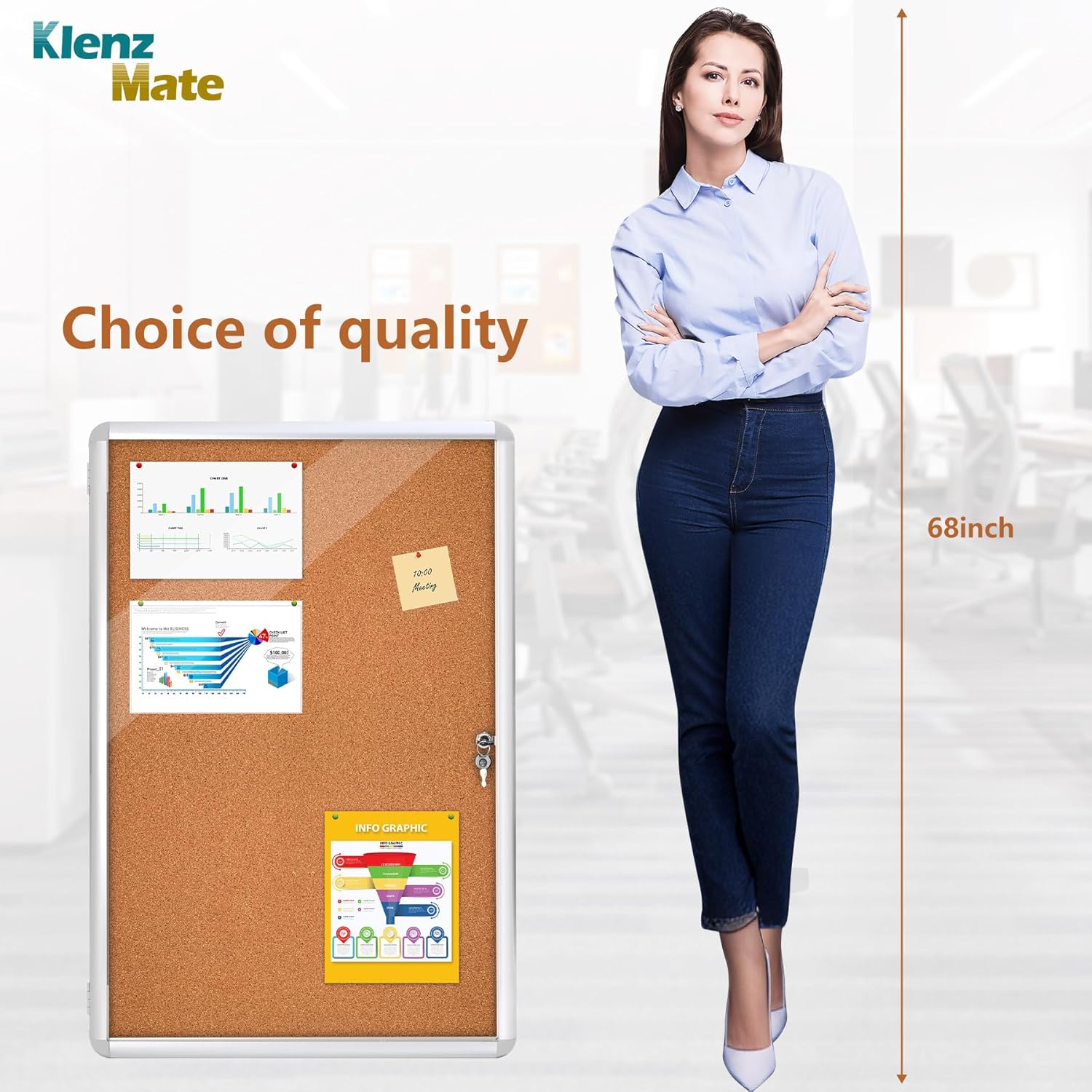 - High-quality Details: Eco-friendly cork backing, self-repairing, accepts pins and tacks. Shatter-resistant acrylic door,scratch-resistant silver-plated aluminum frame and ABS round plastic corners