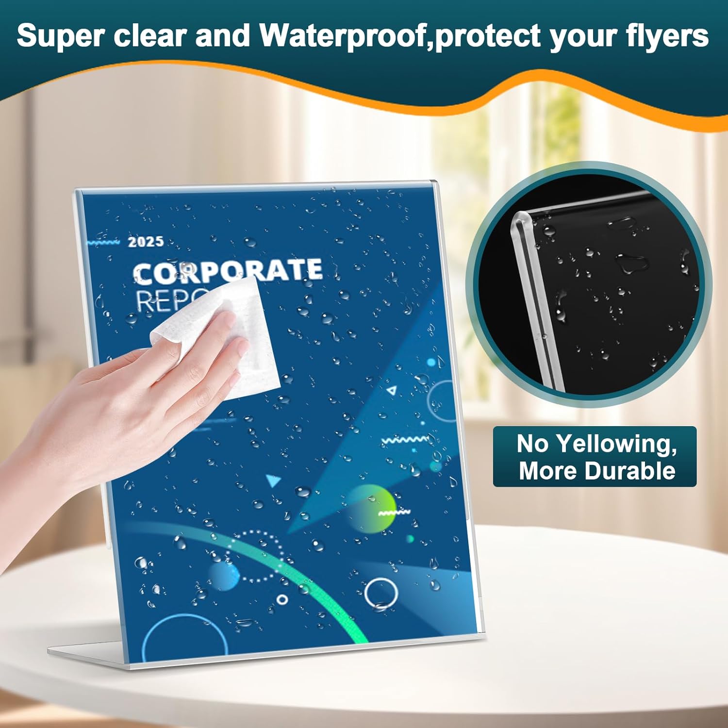 - 【Wide Application】This package contains 12 pcs 8.5 x 11 inch picture paper stand. Our L-shape vertical menu holder stand just insert the paper from the side to display your sign. They can display advertisements, menus, flyers brochures, etc., and can be used in homes, restaurants, offices, wedding scenes, trade exhibitions, and so on.