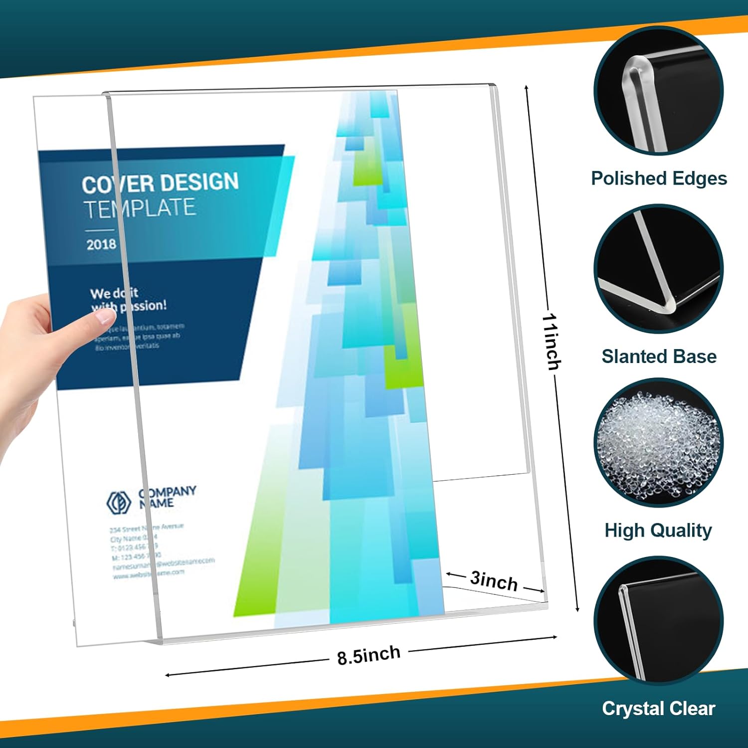 12 Pack Acrylic Sign Holder 8.5x11 Inches, Clear Plastic Table Paper Display Stand, L-Shape Vertical Menu Holder Stand, Clear Picture Photo Flyer Display Stand for Restaurants, Store, Office Desktop